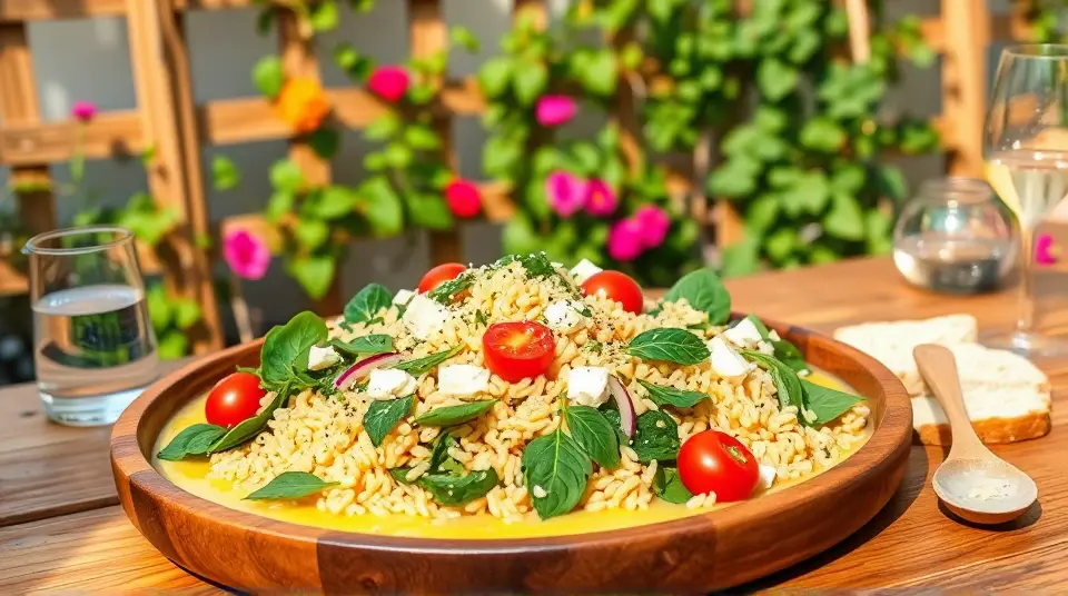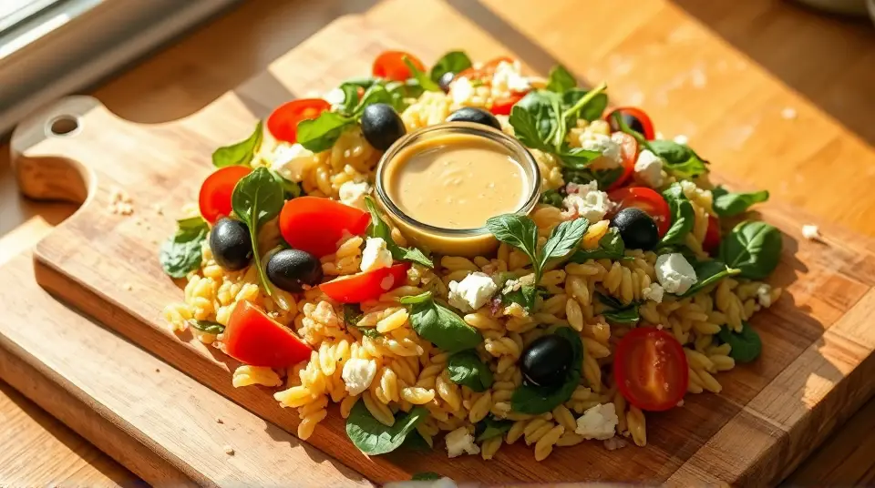 # Refreshing Orzo Salad with Spinach and Tomato π πΏ This vibrant Orzo Salad is the perfect dish for a warm day or a potluck gathering. With its playful flavors and colorful ingredients, itβs light yet satisfying. The combination of tender orzo, fresh spinach, juicy tomatoes, and a zesty lemon dressing makes it irresistibly refreshing. This salad can be served alone or as a delightful side dish! ## Ingredients ### For the salad - 1 cup of orzo pasta - 2 cups of fresh spinach, washed and roughly chopped - 1 cup of cherry tomatoes, halved - 1/2 cup of feta cheese, crumbled - 1/4 cup of red onion, finely diced - 1/4 cup of black olives, pitted and sliced (optional) - Fresh parsley, chopped for garnish ### For the dressing - 1/4 cup of extra virgin olive oil - 2 tablespoons of fresh lemon juice (about 1 lemon) - 1 teaspoon of Dijon mustard - 1 clove of garlic, minced - Salt and pepper to taste ## Instructions 1. **Cook the Orzo**: Bring a large pot of salted water to a boil. Add the orzo pasta and cook according to package instructions until al dente. Drain and rinse with cold water to stop cooking. Set aside. > π₯ Rinsing the orzo will help cool it down quickly and prevent it from sticking together. 2. **Prepare the Dressing**: In a small bowl, whisk together olive oil, lemon juice, Dijon mustard, minced garlic, salt, and pepper until well combined. > π Feel free to add a pinch of red pepper flakes for a bit of heat! 3. **Combine Ingredients**: In a large bowl, combine the cooked orzo, chopped spinach, halved cherry tomatoes, red onion, black olives, and feta cheese. 4. **Dress the Salad**: Pour the dressing over the salad ingredients and toss gently until everything is evenly coated. 5. **Garnish and Serve**: Garnish with fresh parsley and serve chilled or at room temperature. > π§ This salad can be made ahead of time! Just keep the dressing separate until you're ready to serve for best freshness. ## Variations - **Protein-Packed**: Add grilled chicken or chickpeas for a heartier meal. - **Mediterranean Twist**: Incorporate artichoke hearts or roasted red peppers. - **Herbal Delight**: Swap spinach for arugula or add basil for a different flavor profile. - **Gluten-free**: Substitute orzo with quinoa or a gluten-free pasta variety for a safe option. Enjoy this deliciously simple Orzo Salad with Spinach and Tomato, and let its freshness shine at your table! ππ₯name