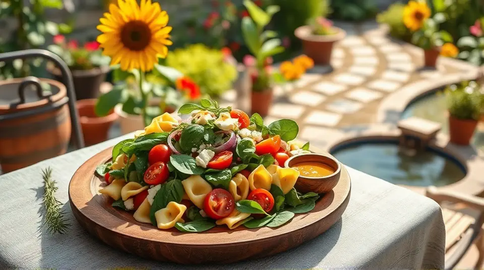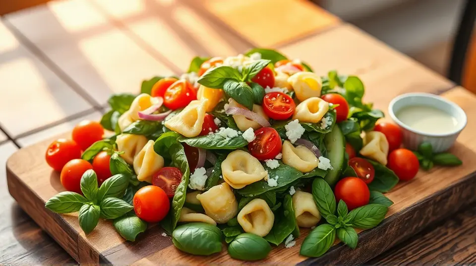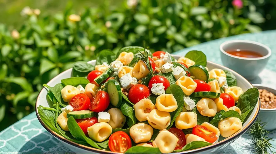 # Spinach Tortellini Salad 🥗🍝 This Spinach Tortellini Salad is a delightful mix of fresh flavors and textures, making it a perfect dish for a light lunch, potluck, or as a side at your next barbecue. The combination of tender tortellini, vibrant spinach, and a zesty dressing keeps it refreshing and satisfying. It's even better when made ahead of time, allowing the flavors to marinate and deepen. Serve chilled or at room temperature for a vibrant addition to any meal! 🌼 ## Ingredients ### For the salad - 2 cups fresh spinach, chopped - 1 package (9 oz) cheese tortellini - 1 cup cherry tomatoes, halved - 1/2 cup cucumber, diced - 1/4 cup red onion, thinly sliced - 1/3 cup feta cheese, crumbled - 1/4 cup fresh basil, chopped - Salt and pepper to taste ### For the dressing - 3 tablespoons olive oil - 1 tablespoon balsamic vinegar - 1 teaspoon Dijon mustard - 1 garlic clove, minced - 1/2 teaspoon honey (optional) - Salt and pepper to taste ## Instructions - Cook the tortellini according to package instructions. Drain and rinse with cold water to stop the cooking process. Set aside. > 🥄 Make sure the tortellini is cooked al dente to keep its shape and texture in the salad. - In a large bowl, combine the chopped spinach, cherry tomatoes, cucumber, red onion, basil, and feta cheese. - In a separate small bowl, whisk together the olive oil, balsamic vinegar, Dijon mustard, minced garlic, and honey (if using). Season with salt and pepper to taste. - Pour the dressing over the salad mixture and toss to combine, then gently fold in the cooled tortellini. > 🌿 Feel free to adjust the dressing to your taste! If you love tanginess, add an extra splash of balsamic vinegar. - Allow the salad to chill in the refrigerator for at least 30 minutes, letting the flavors meld. Serve cold or at room temperature. ## Variations - **Vegan**: Substitute tortellini with a vegan version and leave out the feta cheese or replace it with avocado for creaminess! 🥑 - **Protein Boost**: Add grilled chicken, shrimp, or chickpeas for an extra protein punch! 🥩🍤 - **Nutty Delight**: Toss in some toasted pine nuts or walnuts for added crunch and flavor. 🌰 - **Add more veggies**: Try adding bell peppers, olives, or shredded carrots for more color and nutrition! 🥕🍏 With its combination of fresh ingredients and hearty tortellini, this Spinach Tortellini Salad is sure to become a go-to recipe that's both nutritious and delicious! Enjoy! 🎉Images