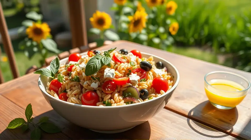 # Summer Orzo Pasta Salad 🍝🌞 This vibrant and refreshing Summer Orzo Pasta Salad is the perfect dish for hot sunny days. Bursting with fresh vegetables, creamy feta cheese, and a zesty lemon dressing, this salad is not only easy to make but also customizable with whatever seasonal ingredients you have on hand. Enjoy it warm or cold, and don't forget to pack it for your picnic or barbecue—it’s a guaranteed crowd-pleaser! 🌿🍅 ## Ingredients ### For the salad - 1 cup orzo pasta - 1 cup cherry tomatoes, halved - 1 cucumber, diced - 1 bell pepper (any color), diced - 1/2 red onion, finely chopped - 1 cup corn (fresh or frozen) - 1/2 cup Kalamata olives, pitted and sliced - 1/2 cup feta cheese, crumbled - 1/4 cup fresh basil, chopped (or your favorite herbs) ### For the dressing - 1/4 cup extra virgin olive oil - 2 tablespoons red wine vinegar - 1 clove garlic, minced - Juice and zest of 1 lemon - Salt and pepper to taste ## Instructions 1. **Cook the orzo**: In a large pot of boiling salted water, add the orzo and cook according to package instructions until al dente. Drain and rinse under cold water to stop the cooking process. 2. **Make the dressing**: In a small bowl, whisk together the olive oil, red wine vinegar, minced garlic, lemon juice and zest, salt, and pepper until well combined. 3. **Combine the salad**: In a large bowl, mix the cooked orzo with cherry tomatoes, cucumber, bell pepper, red onion, corn, olives, feta cheese, and fresh basil. 4. **Dress it up**: Pour the dressing over the salad, tossing gently to combine all the ingredients while ensuring the dressing evenly coats the orzo. 5. **Chill and serve**: Let the salad sit in the fridge for about 30 minutes to allow the flavors to meld together. Serve it chilled or at room temperature. > 🥗 The orzo can absorb the dressing, which makes it even tastier the next day! Feel free to make this salad ahead of time for easy meal prep. ## Variations - **Protein-packed**: Add grilled chicken, shrimp, or chickpeas for a hearty meal option. - **Mediterranean twist**: Incorporate artichoke hearts, sun-dried tomatoes, or capers for an extra zing. - **Creamy version**: Stir in a dollop of Greek yogurt or sour cream for a richer texture. - **Spicy kick**: Toss in some crushed red pepper flakes or diced jalapeños for a hint of heat. 🌶️ - **Gluten-free**: Substitute orzo with quinoa or gluten-free pasta for a deliciously gluten-free option. This Summer Orzo Pasta Salad is sure to be your go-to recipe all season long. Enjoy the sunshine and share this delightful dish with friends and family! 🌊☀️Images