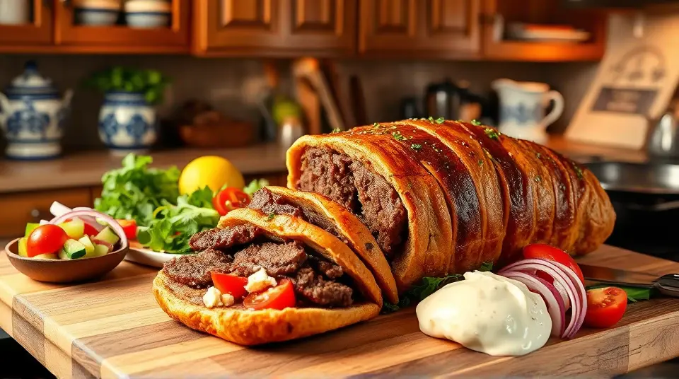 - Create gyros: Once cooked, let the gyro meat rest for 15-20 minutes. Slice thinly and serve in warm pita bread, topped with tzatziki sauce, fresh tomatoes, cucumbers, red onion, and a sprinkle of feta cheese if desired.