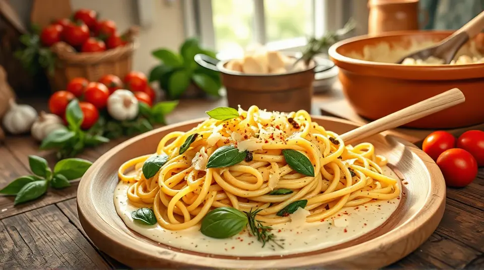 Serve: Plate the pasta and garnish with fresh basil leaves and extra Parmesan cheese.