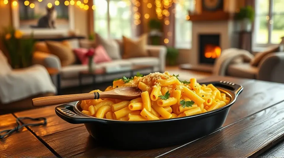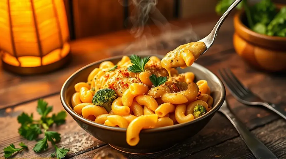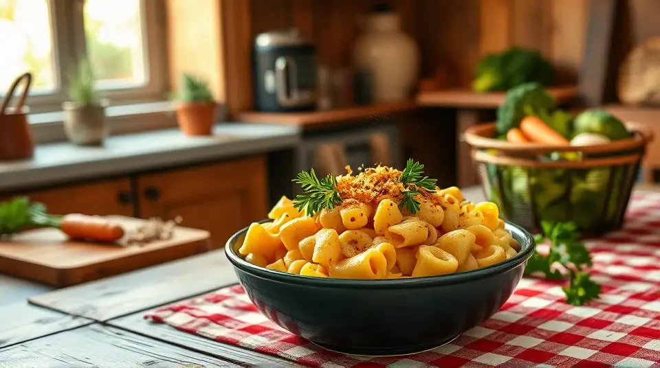 Serve hot: Dish up your mac and cheese and garnish it with fresh herbs and a sprinkle of nutritional yeast for an added cheesy flavor.