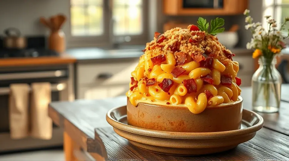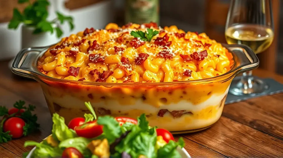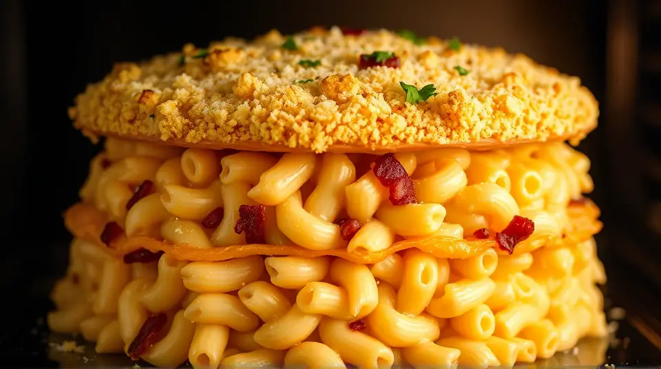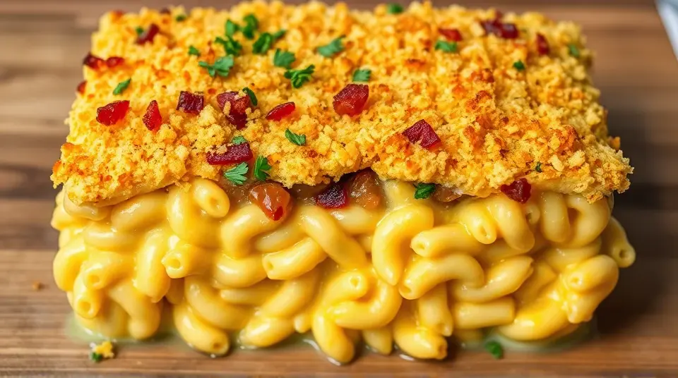 # Three Levels of Mac and Cheese 🧀🍝 This indulgent recipe takes mac and cheese to new heights with three luxurious layers of cheese goodness: a creamy base, a savory middle, and a crispy top. Perfect for a cozy dinner, potlucks, or even a gourmet twist on a classic comfort food! Pair it with a light salad or some roasted veggies for a complete meal. 🌱🥗 ## Ingredients ### For the creamy base - 1 lb elbow macaroni - 4 tablespoons unsalted butter - 1/4 cup all-purpose flour - 4 cups whole milk - 3 cups shredded sharp cheddar cheese - 1 cup cream cheese, softened - 1 teaspoon garlic powder - 1 teaspoon onion powder - Salt and pepper to taste ### For the savory middle layer - 1 cup crumbled cooked bacon (optional) - 1/2 cup caramelized onions - 1/2 cup shredded Gruyère cheese ### For the crispy topping - 1 cup panko breadcrumbs - 1/2 cup grated Parmesan cheese - 2 tablespoons olive oil - 1 tablespoon fresh parsley, chopped (for garnish) ## Instructions 1. **Cook the macaroni**: Boil a large pot of salted water and cook the elbow macaroni according to package instructions until al dente. Drain and set aside. > 🥄 Be careful not to overcook the pasta; it will continue to cook in the oven. 2. **Make the creamy cheese sauce**: In a large pot, melt the butter over medium heat. Whisk in the flour and cook for 1-2 minutes. Gradually add the milk, whisking constantly until thickened. Stir in the cheddar cheese, cream cheese, garlic powder, onion powder, salt, and pepper until the cheese is melted and smooth. 3. **Combine**: Add the cooked macaroni to the cheese sauce and mix until well coated. 4. **Layer the dish**: In a greased 9x13 inch baking dish, pour half of the mac and cheese mixture. Sprinkle the crumbled bacon and caramelized onions evenly over the top, followed by the Gruyère cheese. Pour the remaining mac and cheese on top. 5. **Prepare the crispy topping**: In a small bowl, mix the panko breadcrumbs, Parmesan cheese, and olive oil until combined. Evenly spread the mixture over the mac and cheese. 6. **Bake**: Preheat your oven to 350°F (175°C) and bake uncovered for 25-30 minutes, or until the topping is golden brown and crispy. 7. **Serve**: Remove from the oven and let it cool for a few minutes. Garnish with chopped parsley before serving. > 🍽️ This mac and cheese pairs beautifully with a crisp white wine or a cold beer, making it a perfect dish for gatherings or a cozy night in! ## Variations - **Add Vegetables**: Toss in steamed broccoli, spinach, or roasted red peppers for extra nutrition and flavor! 🥦 - **Spicy Kick**: Add a pinch of cayenne pepper or chopped jalapeños to the cheese sauce for some heat. 🔥 - **Different Cheeses**: Experiment with your favorite cheeses such as Fontina, Monterey Jack, or even blue cheese for a unique twist. - **Gluten-Free**: Swap the elbow macaroni with gluten-free pasta, and use a gluten-free flour blend for the sauce. Enjoy making this Three Levels of Mac and Cheese and elevate your comfort food game! 🧀✨Images