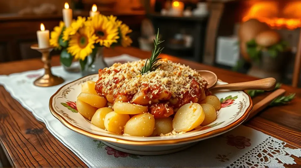 # Classic Potatoes au Gratin 🥔🧀 This comforting dish is a timeless favorite, showcasing the perfect combination of tender potatoes, creamy sauce, and gooey cheese. It's wonderful for gatherings, cozy family dinners, or any occasion where you want to impress your guests. With its rich flavors and satisfying texture, Classic Potatoes au Gratin is sure to warm hearts and bellies alike! Consider serving it alongside juicy roasted meats or a crisp salad to balance the richness of the gratin. 🍖🥗 ## Ingredients ### For the gratin - 2 pounds of Yukon Gold potatoes, thinly sliced - 2 cups of heavy cream - 2 cups of shredded Gruyère cheese - 1 cup of shredded sharp cheddar cheese - 3 cloves of garlic, minced - 1 tablespoon of fresh thyme leaves (or 1 teaspoon of dried thyme) - Salt and freshly ground black pepper to taste - 1/4 teaspoon of nutmeg (optional) ### For the topping - 1/2 cup of breadcrumbs (panko works well for extra crunch!) - 1/4 cup of grated Parmesan cheese - 2 tablespoons of melted butter ## Instructions 1. **Preheat your oven** to 375°F (190°C). 2. **Prepare the potatoes:** In a large bowl, combine the sliced potatoes, minced garlic, thyme, salt, pepper, and nutmeg. Toss well to coat the potatoes evenly. 3. **Make the creamy sauce:** In a saucepan over medium heat, combine the heavy cream and half of the Gruyère and cheddar cheeses. Stir until the cheese is melted and the mixture is smooth. 4. **Layer the gratin:** Grease a 3-quart baking dish with cooking spray or butter. Layer half of the potato mixture evenly at the bottom. Pour half of the creamy cheese sauce over the potatoes. Repeat with the remaining potatoes and sauce. 5. **Add the topping:** In a small bowl, mix the breadcrumbs, Parmesan cheese, and melted butter until combined. Sprinkle the breadcrumb mixture evenly over the top of the gratin. 6. **Bake:** Cover the baking dish with aluminum foil (to prevent burning) and bake in the preheated oven for 45 minutes. Remove the foil and continue baking for an additional 20 minutes or until the top is golden and bubbly. 7. **Cool and serve:** Allow the dish to cool for about 10 minutes before serving. This will help the layers set, making it easier to slice! > 🧄 For a little extra kick, consider adding cooked diced ham or sautéed onions between the layers. This adds depth and flavor that complements the creaminess beautifully. ## Variations - **Herb-infused**: Experiment by adding fresh herbs like rosemary or parsley for a fresh twist. - **Spicy**: Add sliced jalapeños or a pinch of cayenne pepper to the cream mixture for a spicy kick! - **Vegetarian**: Mix in layers of sautéed mushrooms or spinach to add extra flavor and nutrition. - **Slow-cooker version**: Assemble the gratin in a slow cooker and cook on low for 6-8 hours for a hands-off approach. It won't have the crispy top, but still incredibly delicious! Enjoy every cheesy, creamy bite of this classic dish, because there’s nothing quite like a luscious serving of Potatoes au Gratin! 🥰✨Images