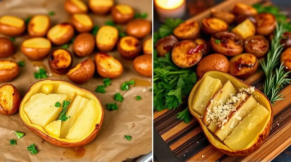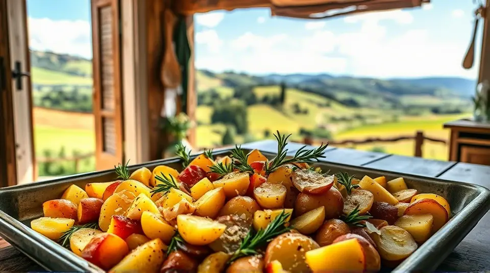# Savory Roasted Potatoes and Onions 🥔🧅 This delightful side dish brings together the earthy flavors of potatoes and the sweetness of roasted onions for a comforting addition to any meal. Perfectly crispy on the outside and tender inside, these roasted potatoes and onions are sure to be a hit at family dinners or gatherings with friends! Pair them with grilled meats, a fresh salad, or enjoy them as a hearty vegan option. The hint of rosemary and garlic elevates the dish to a whole new level! 🌿✨ ## Ingredients ### For the roasted mix - 2 lbs of baby potatoes (Yukon Gold or red) - 2 large yellow onions, sliced - 4 cloves of garlic, minced - 1/4 cup olive oil - 2 tsp fresh rosemary, chopped (or 1 tsp dried) - 1 tsp paprika (smoked or sweet) - Salt and pepper to taste ### Optional Garnish - Fresh parsley, chopped - Grated Parmesan cheese for a non-vegan twist ## Instructions - Preheat your oven to 425°F (220°C) and prepare a large baking sheet by lining it with parchment paper. > ⚡️ Preheating the oven ensures your potatoes will roast to crispy perfection! - Wash the baby potatoes, then halve or quarter them depending on their size. Place them in a large mixing bowl along with the sliced onions and minced garlic. - Drizzle the olive oil over the potatoes and onions, then sprinkle with rosemary, paprika, salt, and pepper. Toss everything together until the potatoes and onions are well-coated. > 🥄 Use your hands for the best mixing technique! It gets the oil and seasonings evenly distributed. - Spread the mixture evenly on the prepared baking sheet, making sure not to overcrowd the potatoes. This allows them to crisp up nicely. - Roast in the preheated oven for about 30-35 minutes, stirring halfway through, until the potatoes are golden brown and fork-tender. > ⚠️ Keep an eye on them in the last few minutes to prevent burning, especially if your oven runs hot! - Once done, remove from the oven and let cool slightly. If desired, sprinkle with fresh parsley and grated Parmesan for an extra layer of flavor. ## Variations - **Herb-infused**: Try incorporating different herbs like thyme or oregano if rosemary isn’t your favorite. Fresh herbs add a wonderful aroma! - **Spicy kick**: Add a pinch of red pepper flakes to the mix for a bit of heat! 🌶️ - **Vegetable medley**: Feel free to include bell peppers or carrots for extra color and nutrition. Just cut them to a similar size so they roast evenly! - **Sheet pan dinner**: Include some sausage or chicken pieces alongside the potatoes and onions for a complete dinner all in one pan. Just adjust the roasting time depending on what you add! Enjoy your delicious roasted potatoes and onions as a satisfying side dish that complements a variety of main courses! 🥰🍽️Images