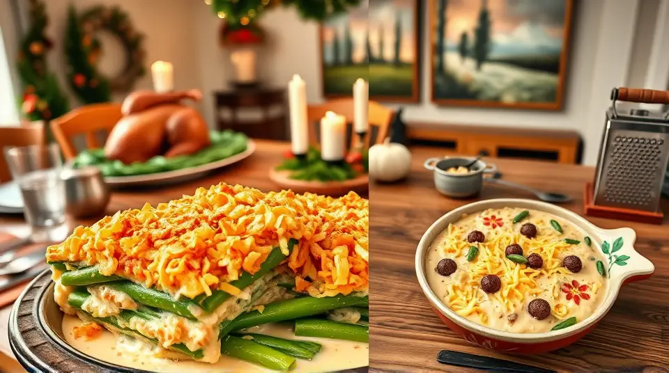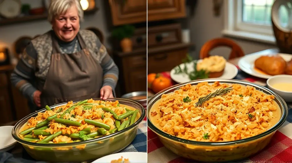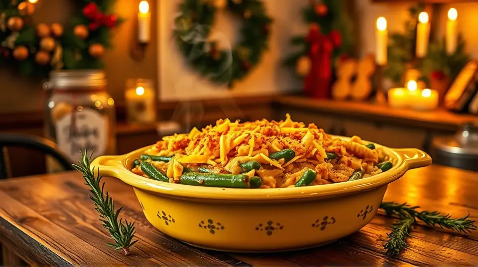 This beloved dish is a holiday staple that combines tender green beans, savory cream of mushroom soup, and crunchy fried onions. It's warmly comforting and sure to impress your family and friends every time it's served! Plus, it's versatile enough to adapt to seasonal variations. Pair it with roasted turkey or your favorite meat dish for a festive meal that everyone will love! 🎉🥧