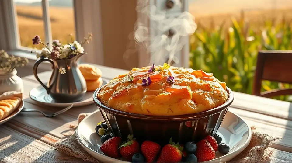 # Southern-Style Cornbread Pudding 🌽🍰 This Cornbread Pudding is a delightful blend of flavors and textures that will transport you straight to the heart of the South! It's creamy, slightly sweet, and has a lovely golden crust, making it a perfect side dish for any meal or a scrumptious dessert on its own. The addition of corn kernels adds a pop of sweetness and a fun texture. Pair it with a drizzle of honey or a scoop of vanilla ice cream for the ultimate indulgence! 🍯🍨 ## Ingredients ### For the Cornbread Base - 1 box of cornbread mix (about 8.5 oz) - 1 cup of milk - 2 large eggs - 1/2 cup of melted butter ### For the Pudding Mixture - 1 cup of sweet corn kernels (fresh, frozen, or canned) - 1 cup of cream-style corn - 1/2 cup of granulated sugar - 1/2 tsp of vanilla extract - 1 tsp of baking powder - 1/2 tsp of salt ### To Serve - Honey or maple syrup (optional) - Fresh berries for garnish (optional) ## Instructions 1. **Preheat the Oven**: Preheat your oven to 350°F (175°C) and grease a 9x9 inch baking dish. 2. **Prepare the Cornbread Base**: In a large bowl, combine the cornbread mix, milk, eggs, and melted butter. Stir until just combined; it's okay if there are a few lumps. > 🥄 Avoid overmixing to keep the cornbread light and fluffy. 3. **Mix the Pudding Ingredients**: In a separate bowl, combine the sweet corn kernels, cream-style corn, sugar, vanilla extract, baking powder, and salt. Mix well. 4. **Combine**: Gently fold the pudding mixture into the cornbread batter until just combined. 5. **Bake**: Pour the combined mixture into the prepared baking dish and smooth the top. Bake for 45-50 minutes or until the top is golden brown and a toothpick inserted into the center comes out clean. 6. **Serve**: Allow the pudding to cool slightly before serving. Drizzle with honey or maple syrup if desired, and top with fresh berries for a beautiful presentation. > 🍓 Fresh berries add a tart contrast that pairs wonderfully with the sweetness of the cornbread pudding! ## Variations - **Savory Twist**: Add 1 cup of shredded cheese (like cheddar or pepper jack) and a handful of chopped jalapeños for a spicy twist! 🔥 - **Herbed**: Incorporate fresh herbs like rosemary or thyme for a sophisticated touch. - **Gluten-free**: Substitute the cornbread mix with a gluten-free cornbread blend to ensure it’s suitable for everyone. - **Make it a Meal**: Add cooked and crumbled sausage or diced bacon into the batter for a hearty dish that can stand on its own! This Cornbread Pudding is sure to become a favorite in your household. Serve it warm for the best experience! Enjoy! 🌟Images