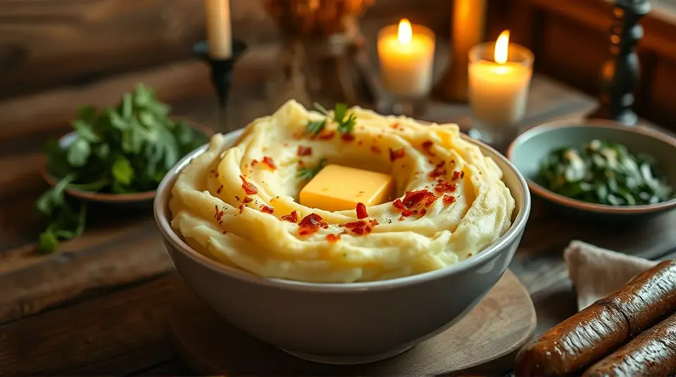 # Basic and Down to Earth Colcannon 🥔🍃 Colcannon is a traditional Irish dish that combines creamy mashed potatoes with fresh greens and a hint of onion. It's hearty, comforting, and perfect as a side dish for any meal. The creamy texture of the potatoes mixed with the softness of cooked greens makes for a deliciously simple dish that will warm your soul. Pair it with sausages or roasted meat for a delightful dinner! 🍽️ ## Ingredients ### For the colcannon - 4 large potatoes, peeled and quartered - 1 cup of chopped green cabbage (or kale) - 1/2 cup of milk (or plant-based milk) - 1/4 cup of butter (or olive oil) - 1/4 cup of green onions, finely chopped - Salt and pepper to taste ## Instructions - Boil the potatoes in a large pot of salted water until tender, about 15-20 minutes. Drain and return to the pot. > 🥔 For perfectly creamy mashed potatoes, make sure not to overcook them! This can result in watery potatoes. - While the potatoes are cooking, steam the cabbage (or kale) for about 5-7 minutes until it's tender. Set aside. > 💡 If you prefer a stronger flavor, sauté the greens in a bit of butter or olive oil instead of steaming them! - In the pot with the drained potatoes, add the milk (or plant-based milk) and butter (or olive oil). Mash until smooth and creamy. - Stir in the steamed cabbage, green onions, and season with salt and pepper to taste. Mix until everything is well combined. - Serve hot, and if you're feeling indulgent, make a small well in the center, add a pat of butter, and let it melt into the colcannon. > 🧂 For added flavor, you can sprinkle some crispy bacon bits or chives on top before serving! ## Variations - **Vegan**: Substitute the butter with a plant-based alternative and use almond or oat milk instead of dairy milk. This will keep everything plant-friendly but still delicious! 🌱 - **Cheesy**: Stir in a handful of shredded cheese (like cheddar or gouda) after mashing for a richer flavor. Just let it melt into the hot potatoes! 🧀 - **Spicy**: Add a pinch of red pepper flakes or diced jalapeños to the mix for a bit of heat! - **Herby**: Mix in some fresh herbs, like parsley or thyme, to brighten up the flavors. Enjoy your basic and down-to-earth colcannon, the ultimate comfort food! 🥳🍽️Images