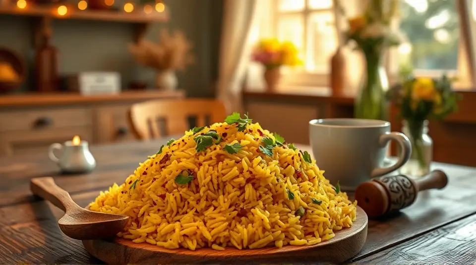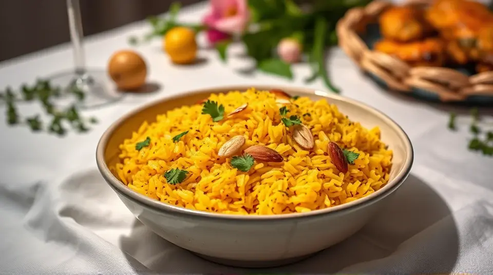 # Deliciously Seasoned Yellow Rice πΎβ¨ This vibrant and flavorful yellow rice is the perfect accompaniment to a variety of main dishes. With its fragrant spices and colorful presentation, itβs sure to impress at any family gathering or dinner party! Itβs simple to prepare and can easily be tailored to suit your palate. Consider pairing it with grilled chicken, roasted vegetables, or a hearty stew for a well-rounded meal! ππ₯¦ ## Ingredients ### For the rice - 1 cup jasmine or basmati rice - 2 cups vegetable or chicken broth - 1 teaspoon turmeric powder - 1/2 teaspoon cumin seeds - 1/2 teaspoon paprika - 1/4 teaspoon cayenne pepper (optional, for a kick) - 1 tablespoon olive oil or butter - 1 small onion, finely chopped - 2 cloves garlic, minced - Salt, to taste ### For garnish - Fresh cilantro or parsley, chopped - Lemon or lime wedges ## Instructions 1. Rinse the rice under cold water until the water runs clear. This helps remove excess starch and prevents the rice from becoming gummy. 2. In a medium saucepan, heat the olive oil or butter over medium heat. Add the chopped onion and cook until translucent, about 5 minutes. 3. Stir in the minced garlic, cumin seeds, turmeric, paprika, and cayenne (if using). Cook for another 1-2 minutes until fragrant. > πΆοΈ The spices will bloom in the hot oil, enhancing the flavor of the rice. Feel free to adjust the spices to your liking! 4. Add the rinsed rice to the saucepan and stir for 1-2 minutes, allowing the rice to soak in the flavors. 5. Pour in the broth and add salt to taste. Bring to a boil, then reduce the heat to low and cover. Let it simmer for about 15-20 minutes, or until the rice is cooked and the liquid is absorbed. 6. Remove from heat and let it sit, covered, for an additional 5 minutes. Fluff the rice with a fork and garnish with freshly chopped cilantro or parsley. 7. Serve with lemon or lime wedges for a zesty finish! > π This rice can be made ahead of time and reheated, making it perfect for meal prep or entertaining guests! ## Variations - **Vegetable Rice**: Add a cup of frozen peas, diced carrots, or bell peppers during the last 5 minutes of cooking for a colorful veggie boost! π₯π₯¦ - **Coconut Rice**: Replace half of the broth with coconut milk for a creamy, tropical flavor. π₯₯ - **Herb-Infused**: Mix in your favorite chopped herbs (like dill, basil, or mint) right before serving for a fresh twist. πΏ - **Nutty Rice**: Toast a handful of sliced almonds or cashews in the saucepan before adding the rice for added crunch and flavor. π₯ Enjoy your deliciously seasoned yellow rice as a delightful side dish that complements any meal! π₯³Images