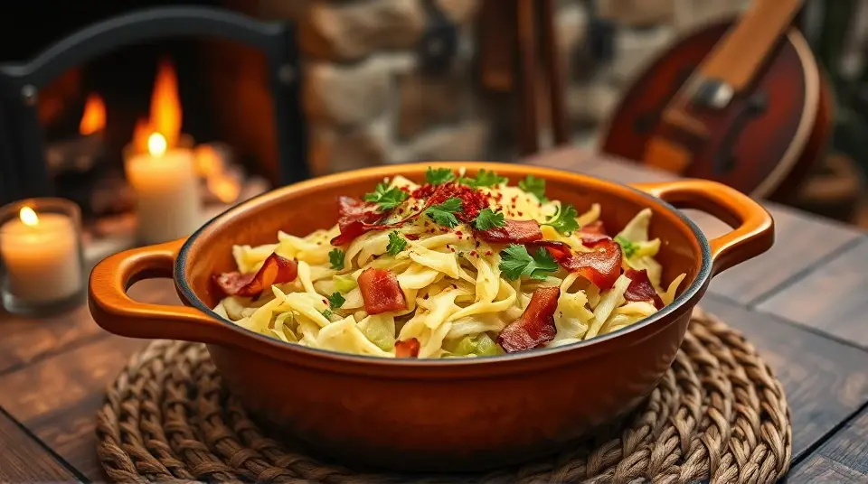 This hearty and comforting dish brings a taste of traditional Irish cuisine right to your table. The sweet, earthy flavors of cabbage are beautifully complemented by the rich, savory notes of bacon. It's an easy-to-make recipe that captures the essence of home-cooked goodness, perfect for a cozy dinner or as a side dish for any festive gathering. Pair it with a slice of crusty bread for a complete meal! 🍞
