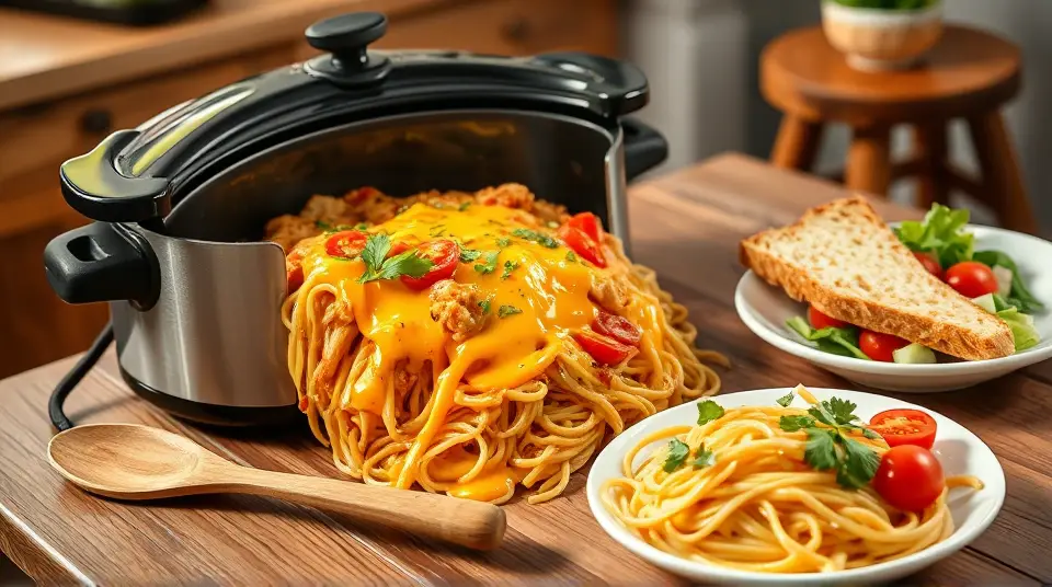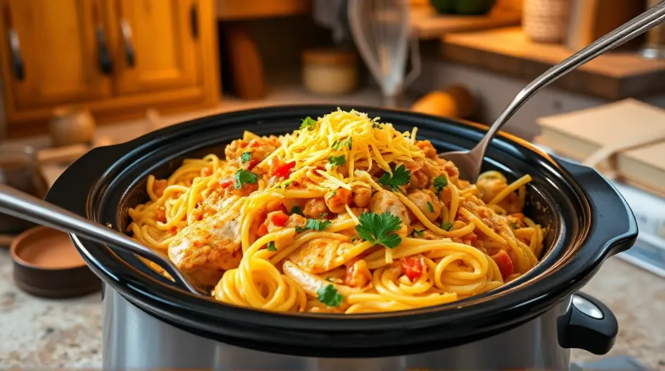 Slow Cooker Cheesy Chicken Spaghettillm