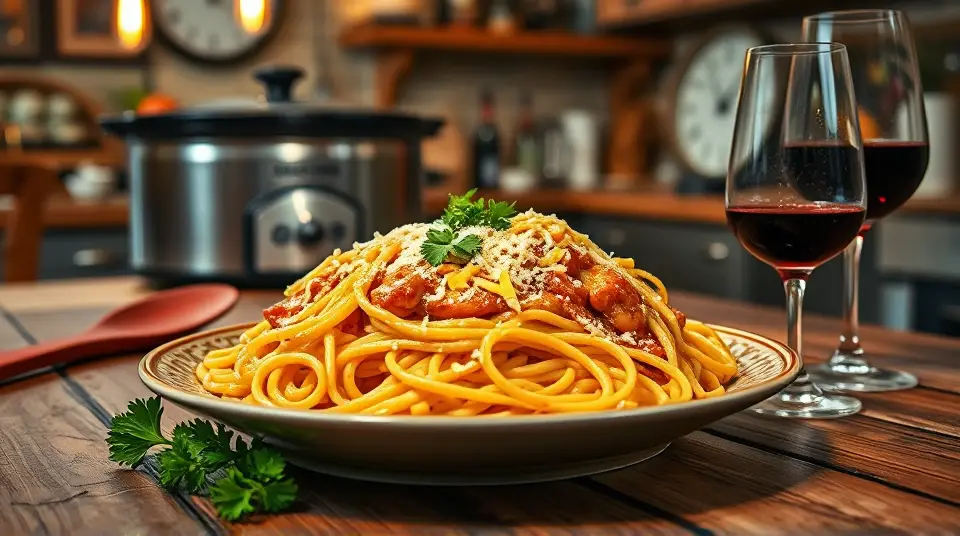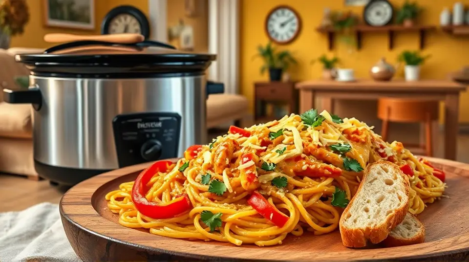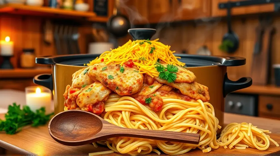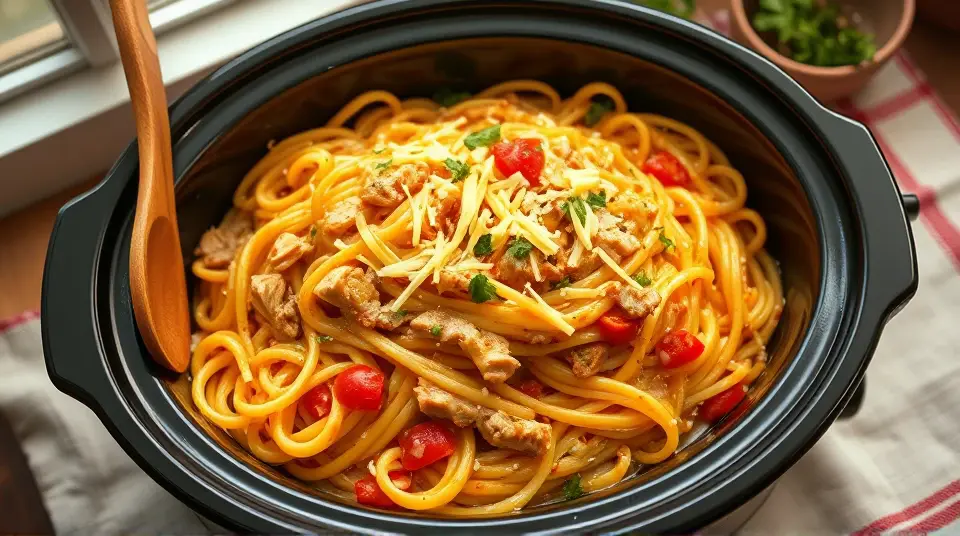 Slow Cooker Cheesy Chicken Spaghetti 🍝🧀