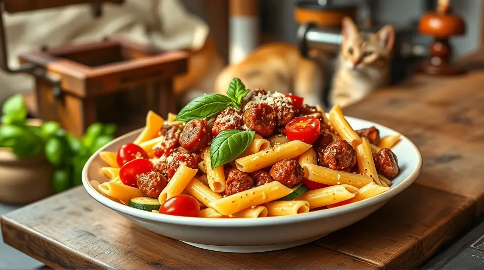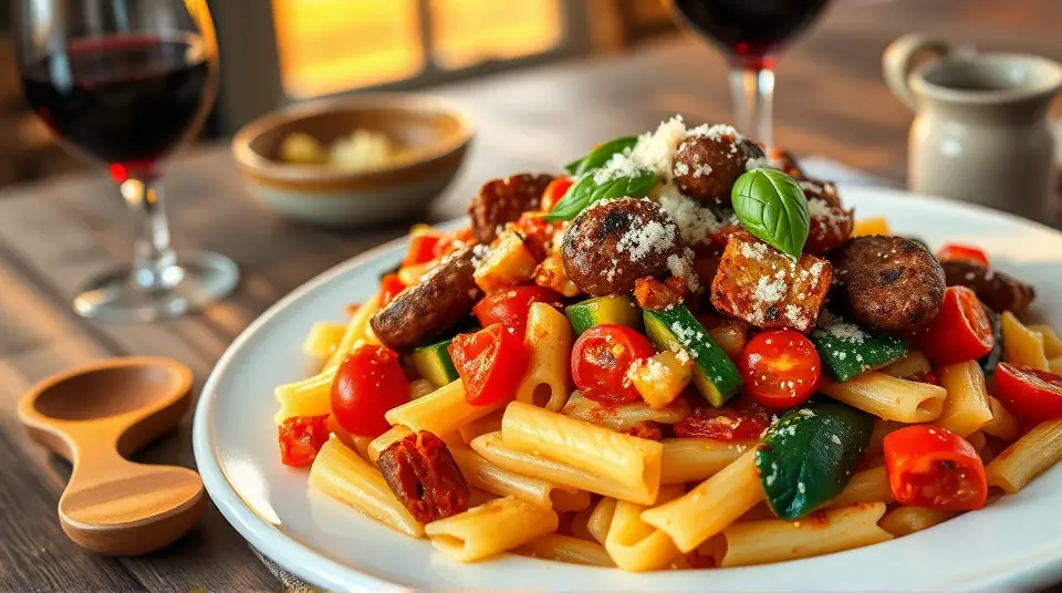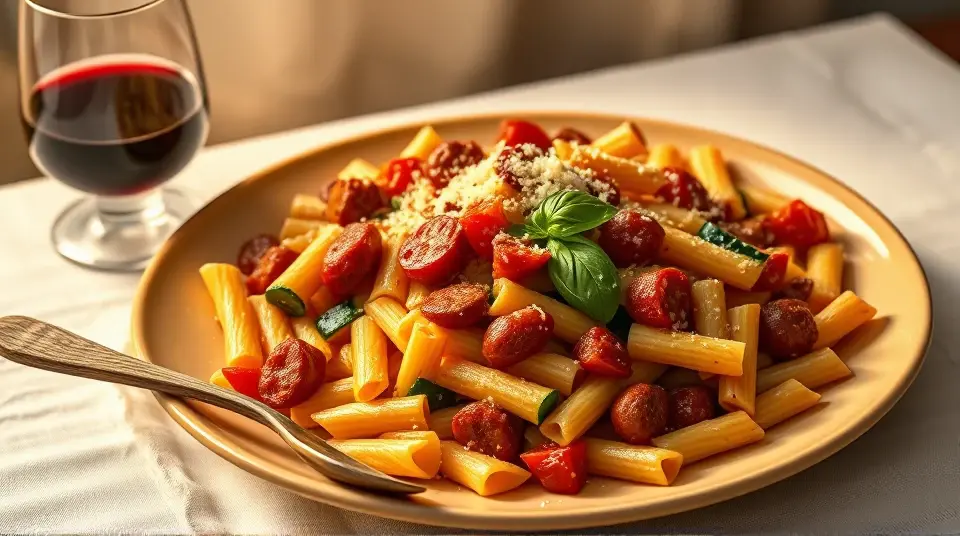 Rigatoni with Sausage, Tomatoes, and Zucchini 🍝🌿