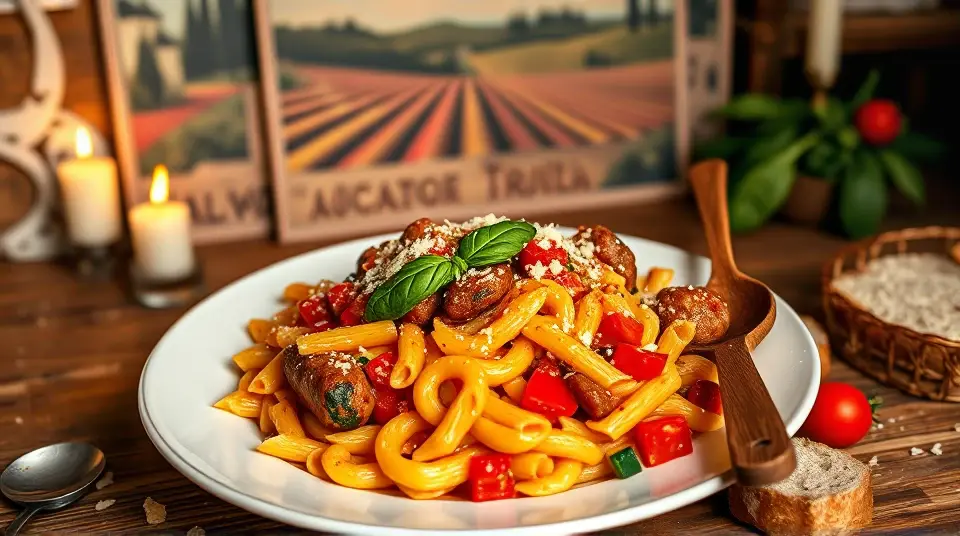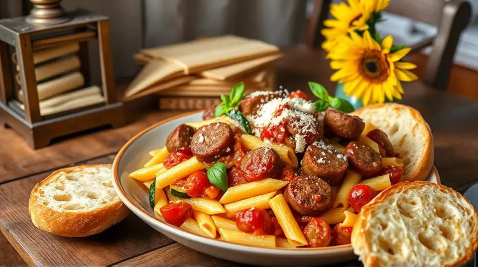This hearty pasta dish combines the savory goodness of Italian sausage, the vibrant freshness of zucchini, and the rich, tangy flavor of tomatoes. It's a satisfying meal that can be prepared in just under 30 minutes, making it perfect for weeknight dinners or cozy gatherings with family and friends! Serve it with a sprinkle of freshly grated Parmesan and a side of crusty bread for a truly delightful experience. 🥖🍷