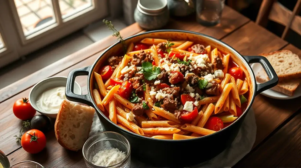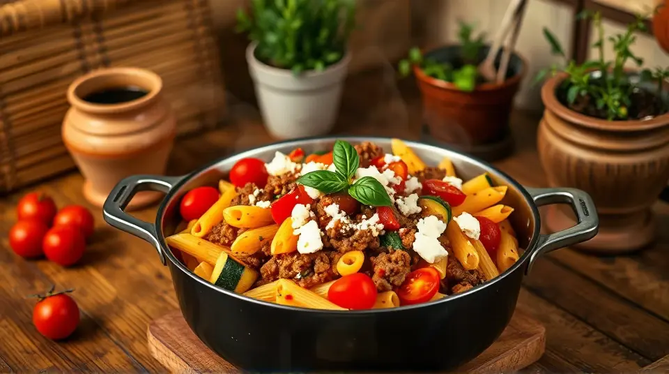 Mediterranean Ground Lamb Pasta One-Pot Dinner 🍝🇬🇷