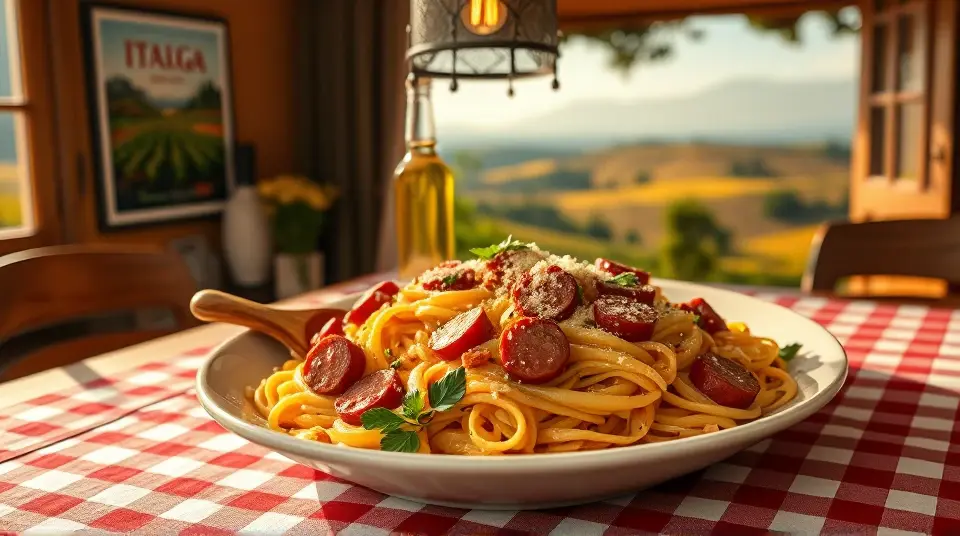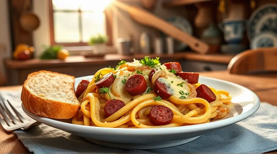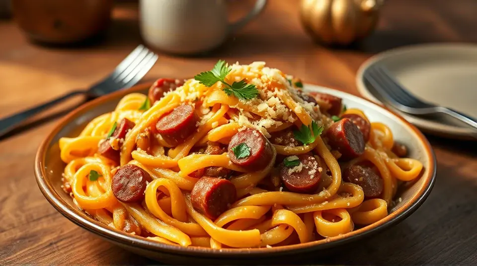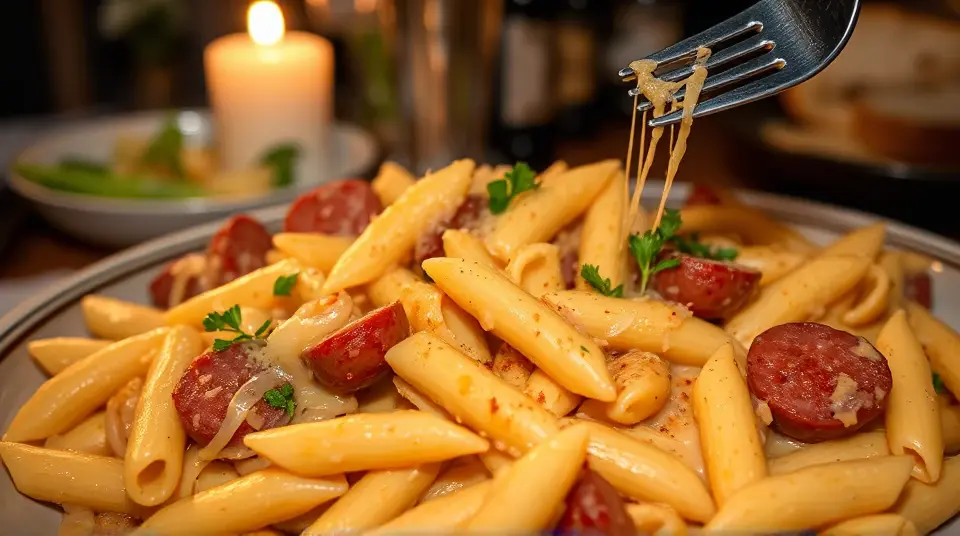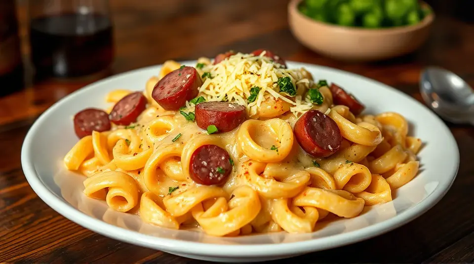 Enjoy your creamy and savory Cheese Smoked Sausage Pasta! 🍝🧀🌶️