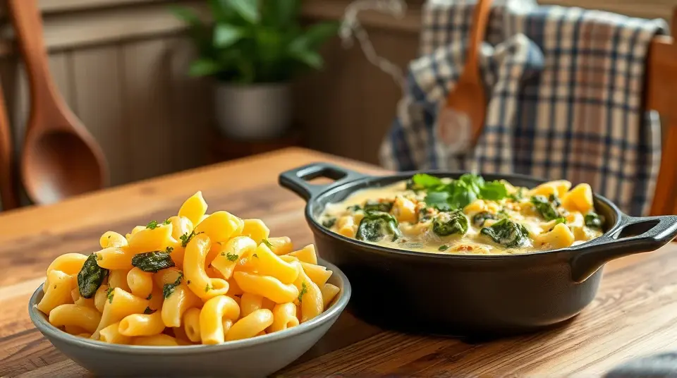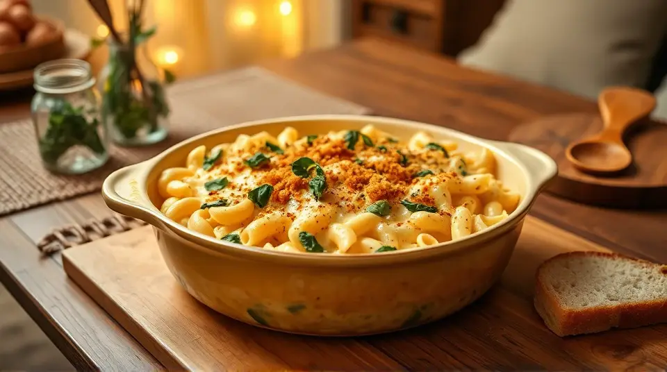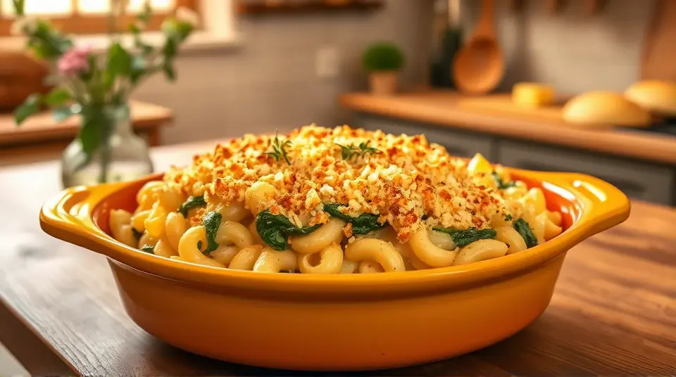 # Creamy Havarti Mac and Cheese with Spinach 🧀🍃 This delightful twist on a classic comfort food is creamy, cheesy, and packed with nutritious spinach. The smooth and slightly tangy flavor of Havarti cheese elevates the traditional mac and cheese experience, making it a perfect dish for family dinners, potlucks, or cozy nights in. Pair it with a simple side salad or garlic bread for an extra satisfying meal! 🥗🍞 ## Ingredients ### For the mac and cheese - 8 ounces elbow macaroni - 2 tablespoons butter - 2 tablespoons all-purpose flour - 2 cups milk (whole or 2%) - 2 cups shredded Havarti cheese - 1 cup shredded sharp cheddar cheese - 1 teaspoon garlic powder - 1 teaspoon onion powder - Salt and pepper to taste ### For the spinach addition - 2 cups fresh spinach, chopped - 1 tablespoon olive oil - 1 clove garlic, minced - 1/4 teaspoon red pepper flakes (optional for some heat) - Juice of half a lemon ## Instructions 1. **Cook the pasta**: - In a large pot of salted boiling water, cook the elbow macaroni according to package instructions until al dente. Drain and set aside. 2. **Sauté the spinach**: - In a skillet, heat the olive oil over medium heat. Add the minced garlic and red pepper flakes, sautéing for about 30 seconds until fragrant. - Add the chopped spinach and cook for 2-3 minutes, stirring until wilted. Squeeze in the lemon juice and season with salt and pepper. Remove from heat and set aside. 3. **Make the cheese sauce**: - In the same pot used for the pasta, melt the butter over medium heat. Whisk in the flour to create a roux, cooking for about 1 minute until golden. - Gradually pour in the milk, whisking continuously to prevent lumps. Bring the mixture to a simmer and let it thicken, about 3-5 minutes. - Stir in the garlic powder and onion powder, and then gradually mix in the cheeses until melted and creamy. Season with salt and pepper to taste. 4. **Combine**: - Add the cooked macaroni and sautéed spinach to the cheese sauce, stirring gently until everything is well coated. 5. **Serve**: - Transfer the creamy Havarti mac and cheese to a serving dish or individual bowls, and enjoy! > 🥄 For an extra crispy topping, consider baking the mac and cheese in an oven-safe dish. Top with breadcrumbs and a sprinkle of cheese, then bake at 350°F (175°C) for 15-20 minutes until golden and bubbly. ## Variations - **Gluten-free**: Use gluten-free pasta and a gluten-free flour blend for the roux. Make sure your cheese is gluten-free as well! 🌾✨ - **Additional protein**: Stir in cooked chicken, bacon, or chickpeas for a heartier meal. 🐔🥓 - **Herb infusion**: Add fresh herbs such as thyme or basil for added flavor and freshness. - **Cheese lovers**: Experiment with different cheese combinations like Gruyère or Fontina for a unique flavor profile! Enjoy your creamy Havarti mac and cheese with spinach—it’s cheesy goodness that everyone will love! 😍🍽️Images