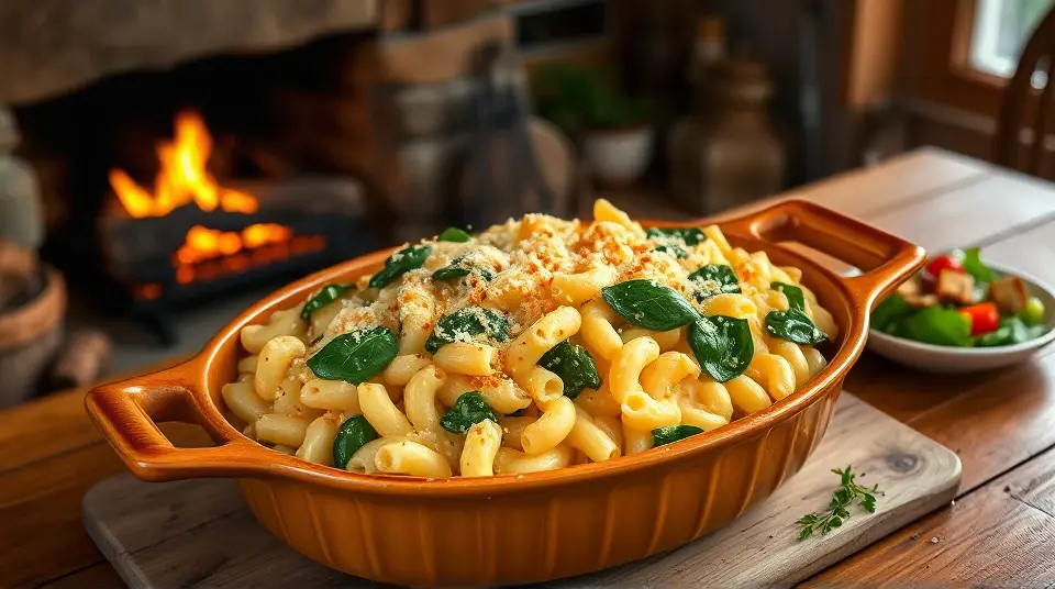 Havarti Mac and Cheese, with Spinachllm