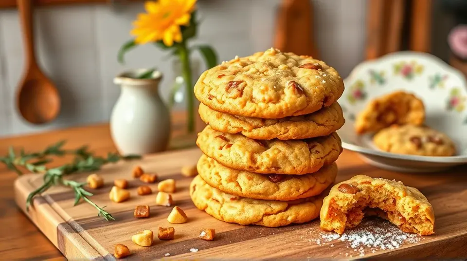 # Toffee Bit Cookies using Yellow Cake Mix 🍪🍬 These Toffee Bit Cookies are incredibly easy to whip up and full of rich flavor. Using yellow cake mix as a base gives them a soft, chewy texture that's irresistible. The addition of toffee bits adds a delightful crunch and a sweet caramel flavor, making these cookies perfect for family gatherings, bake sales, or simply a cozy treat at home. Enjoy them on their own or with a tall glass of milk! 🥛✨ ## Ingredients ### For the cookies - 1 box (15.25 oz) yellow cake mix - 1/2 cup unsalted butter, melted - 2 large eggs - 1 teaspoon vanilla extract - 1 cup toffee bits (such as Heath or Skor) ### Optional mix-ins - 1/2 cup chopped nuts (pecans or walnuts) - 1/2 cup chocolate chips ## Instructions - Preheat your oven to 350°F (175°C) and line a baking sheet with parchment paper. - In a large mixing bowl, combine the melted butter, eggs, and vanilla extract. Mix until well combined. - Gradually add in the yellow cake mix, stirring until the mixture is smooth. > 🥄 Don't worry about overmixing too much; the cake mix is forgiving! Just aim for a batter that looks uniform without any dry streaks. - Gently fold in the toffee bits (and any optional mix-ins if using) until evenly distributed. - Drop tablespoon-sized balls of dough onto the prepared baking sheet, spacing them about 2 inches apart to allow for spreading. - Bake in the preheated oven for 10-12 minutes, or until the edges are lightly golden and the centers look set. > ⏲️ Keep an eye on them because they can go from perfectly baked to overcooked quickly! - Remove from the oven and let the cookies cool on the baking sheet for about 5 minutes before transferring them to a wire rack to cool completely. ## Variations - **Nutty Delight**: Add a cup of chopped pecans or walnuts for an extra crunch! 🌰 - **Chocolate Lover's**: Mix in a handful of chocolate chips for a rich chocolate-toffee experience! 🍫 - **Salted Caramel**: Sprinkle a pinch of sea salt on top of the cookies right after baking for that sweet and salty contrast. - **Gluten-free**: Substitute the yellow cake mix with a gluten-free cake mix. Keep the other ingredients the same! Enjoy these delectable Toffee Bit Cookies fresh out of the oven or store them in an airtight container for later. They make for a perfect snack any time of day! 😋✨Images