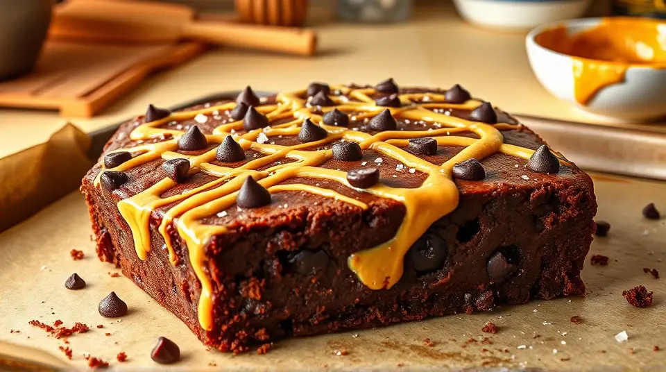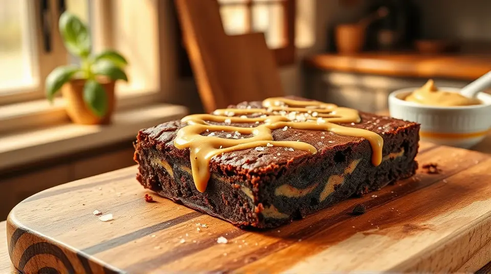 - Once the brownies are out of the oven, let them cool for about 10 minutes, then drizzle the melted peanut butter over the top. For an added touch, sprinkle with a pinch of sea salt.