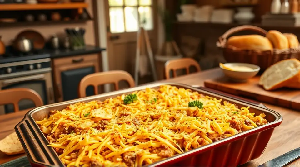 This hearty and comforting casserole is perfect for a cozy dinner at home! It combines ground beef, melted cheddar cheese, and caramelized onions to create a satisfying dish that's sure to please everyone. Plus, it’s easy to make, making it an ideal choice for busy weeknights or feeding a crowd!