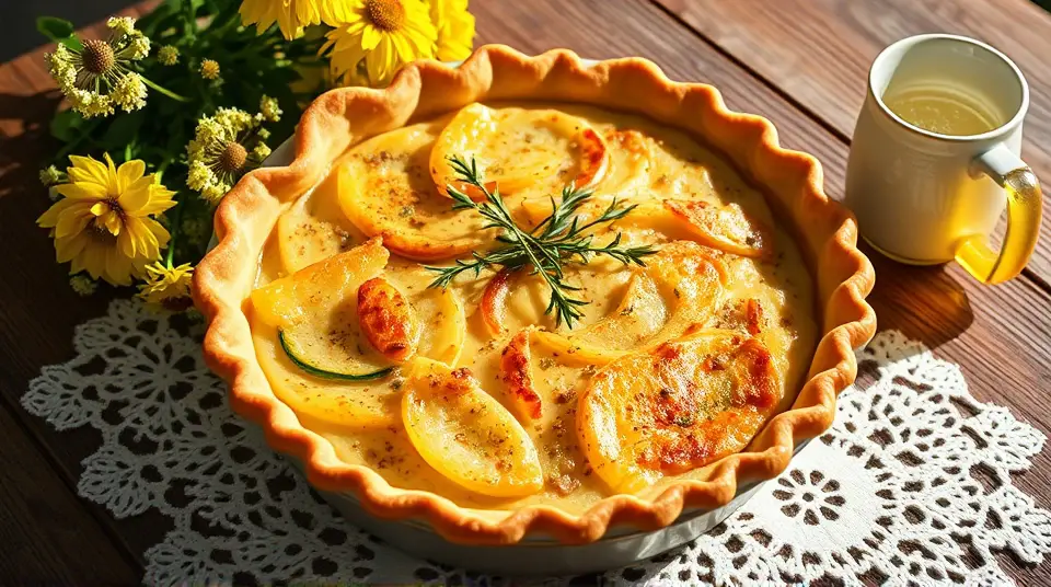 This delightful Zucchini Onion Summer Pie is a refreshing and savory dish perfect for warm summer days. It combines the garden-fresh flavors of zucchini and onions with a buttery crust, making it an ideal addition to any picnic, potluck, or family gathering. Enjoy it warm or at room temperature, and consider pairing it with a crisp salad or a glass of iced tea for a fulfilling meal! 🍹🌼