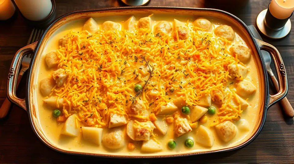 # Creamy Chicken Potato Casserole 🍗🥔 This comforting Chicken Potato Casserole is a hearty and satisfying dish that's perfect for family dinners or potlucks. The creamy filling and tender potatoes come together beautifully, making it a crowd-pleaser that's sure to warm your heart and stomach. Feel free to customize it with your favorite vegetables or spices for an extra twist! ## Ingredients ### For the casserole - 2 cups cooked chicken, shredded or diced - 4 medium potatoes, peeled and thinly sliced - 1 onion, chopped - 2 cups frozen mixed vegetables (peas, carrots, and corn) - 2 cloves garlic, minced - 1 teaspoon dried thyme - 1 teaspoon paprika - 1/2 teaspoon salt - 1/4 teaspoon black pepper - 1 cup shredded cheddar cheese ### For the creamy sauce - 1 can (10.5 oz) cream of chicken soup - 1 cup sour cream - 1/2 cup chicken broth ## Instructions - Preheat your oven to 375°F (190°C). - In a large mixing bowl, combine the cream of chicken soup, sour cream, and chicken broth. Mix until well blended. > 🥄 This creamy sauce will add richness to your casserole while keeping the chicken and vegetables moist during baking. - Layer half of the sliced potatoes in the bottom of a greased 9x13 inch baking dish. - Spread half of the shredded chicken over the potatoes, followed by half of the chopped onion and half of the frozen vegetables. - Pour half of the creamy sauce over the first layer, then sprinkle with half of the thyme, paprika, salt, and pepper. - Repeat the layering process with the remaining ingredients, finishing with the remaining creamy sauce on top. - Cover the casserole with aluminum foil and bake for 40 minutes. Remove the foil, sprinkle the shredded cheddar cheese on top, and bake for an additional 15-20 minutes until the cheese is bubbly and golden, and the potatoes are tender. > 🔥 Keep an eye on the cheese in the last few minutes of baking to prevent it from burning! ## Variations - **Vegetarian**: Substitute the chicken with cooked chickpeas or lentils and use vegetable broth instead of chicken broth for a meat-free option. 🌱 - **Spicy**: Add a pinch of cayenne pepper or some chopped jalapeños for a kick of heat! 🌶️ - **Herbed**: Mix in fresh herbs like rosemary or parsley to elevate the flavor profile. 🌿 - **One-dish meal**: Add more nutrition by mixing in additional chopped veggies like bell peppers, broccoli, or spinach before layering. Serve this delicious Chicken Potato Casserole hot, and watch it disappear from your dinner table! Enjoy with a side salad for a complete meal. 🍽️✨Images