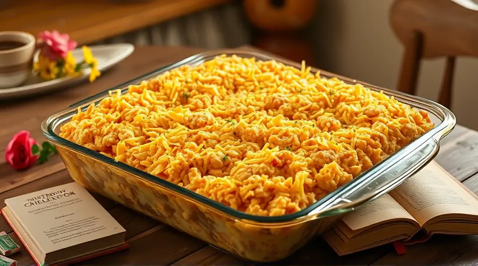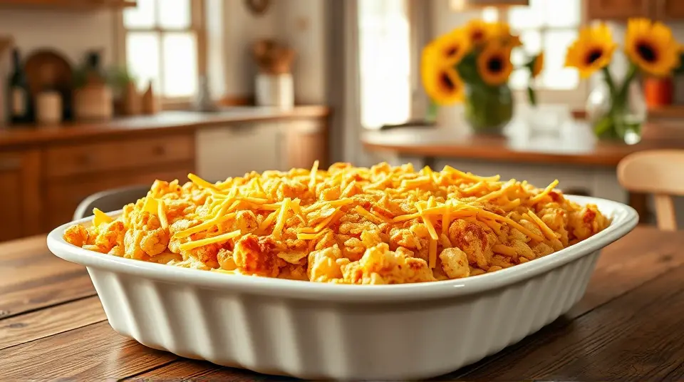 # Hashbrown Chicken Casserole 🥔🍗 This hearty and comforting Hashbrown Chicken Casserole is a family favorite that's perfect for busy weeknights or cozy weekends. With its creamy goodness and crispy topping, this dish is both satisfying and delicious. Plus, it's super easy to prepare, making it the ideal meal for any home chef! ## Ingredients ### For the casserole - 1 bag (30 oz) frozen hashbrowns (or home grated) - 2 cups cooked, shredded chicken (rotisserie works great!) - 1 cup sour cream - 1 can (10.5 oz) cream of chicken soup (or homemade) - 1 cup shredded cheddar cheese - 1/2 cup diced onion - 1/2 cup diced bell pepper (any color) - 1 teaspoon garlic powder - Salt & pepper to taste ### For the topping - 1 cup crushed cornflakes or potato chips - 1/4 cup melted butter - 1/2 cup shredded cheddar cheese (optional) ## Instructions - Preheat your oven to 350°F (175°C). - In a large mixing bowl, combine the frozen hashbrowns, shredded chicken, sour cream, cream of chicken soup, shredded cheddar cheese, diced onion, diced bell pepper, garlic powder, and salt & pepper. Mix until everything is well combined. > 🥄 For a spicier kick, consider adding diced jalapeños or a sprinkle of red pepper flakes to the mixture! - Transfer the hashbrown mixture into a greased 9x13 inch baking dish, spreading it evenly. - In a separate bowl, mix the crushed cornflakes (or potato chips) with the melted butter until well coated. Sprinkle this mixture over the hashbrown chicken layer. If you’re feeling cheesy, sprinkle an extra 1/2 cup of shredded cheddar cheese on top! > 🌟 Using potato chips instead of cornflakes will give your casserole a salty, flavorful crunch! - Bake in the preheated oven for 45-55 minutes or until the top is golden brown and the casserole is heated through. - Let it cool for a few minutes before serving to avoid hot spots. > 🍽️ Serve with a side salad or steamed vegetables for a complete meal! ## Variations - **Vegetarian**: Substitute the chicken with 2 cups of your favorite vegetables, such as broccoli, zucchini, or mushrooms. - **Healthier version**: Use low-fat sour cream and reduced-fat cheeses to lighten things up while still keeping it tasty! - **Spicy**: Add diced green chilies or a dash of hot sauce to the mixture for some extra heat. - **Low-carb**: Swap out the hashbrowns for cauliflower rice for a delicious keto-friendly option. This Hashbrown Chicken Casserole is sure to become a staple in your dinner rotation, satisfying even the pickiest eaters! Enjoy! 🎉🥘Images