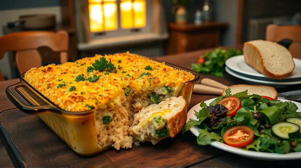# Broccoli Cheddar Chicken and Rice Casserole 🥦🧀🍗 This comforting casserole combines tender chicken, vibrant broccoli, and creamy, cheesy goodness all on a bed of fluffy rice. It's a one-dish wonder that's not only satisfying but also perfect for meal prep or a cozy family dinner! Pair it with a simple green salad for a complete meal experience. 🥗✨ ## Ingredients ### For the casserole - 1 pound boneless, skinless chicken breasts, cubed - 2 cups cooked white or brown rice - 2 cups fresh broccoli florets (or frozen, thawed) - 1 can (10.5 oz) cream of chicken soup - 1 cup milk - 2 cups shredded cheddar cheese (plus extra for topping) - 1 teaspoon garlic powder - 1/2 teaspoon onion powder - Salt and pepper, to taste - 1 tablespoon olive oil - 1 cup breadcrumbs (optional, for topping) ## Instructions 1. Preheat your oven to 350°F (175°C). 2. In a large skillet over medium heat, heat the olive oil and sauté the cubed chicken until golden and cooked through, about 5-7 minutes. Season with garlic powder, onion powder, salt, and pepper. 3. In a large mixing bowl, combine the cooked chicken, rice, broccoli, cream of chicken soup, milk, and 2 cups of cheddar cheese. Stir until everything is evenly coated and mixed. 4. Pour the mixture into a greased 9x13 inch baking dish. Spread it out evenly. 5. For a crunchy topping, combine the breadcrumbs with a sprinkle of cheese and spread over the casserole. 6. Bake in the preheated oven for 25-30 minutes until the cheese is melted and bubbly, and a golden crust forms on top. 7. Remove from the oven and allow to cool for a few minutes before serving. > 🥄 For a little extra creaminess, feel free to add a dollop of sour cream to the mix! This will make the casserole even richer and more decadent. ## Variations - **Vegetarian**: Substitute the chicken with chickpeas or additional vegetables like mushrooms and bell peppers for a hearty, plant-based option. 🌱 - **Spicy Kick**: Add some diced jalapeños or a dash of crushed red pepper for a spicy twist! 🔥 - **Extra Cheesy**: Swap out the cheddar for your favorite cheese blend or add a layer of mozzarella for a gooey finish. - **Whole Grain**: Use brown rice instead of white for a nuttier flavor and added fiber. ## Serving Suggestions Serve this casserole with a sprinkle of fresh chopped parsley or chives for a pop of color and flavor. Pair it with your favorite fruit salad or garlic bread for a well-rounded meal that will please the entire family! 🍞🍇Images