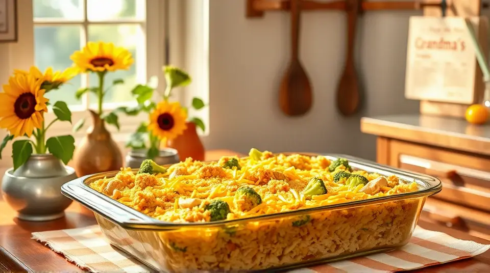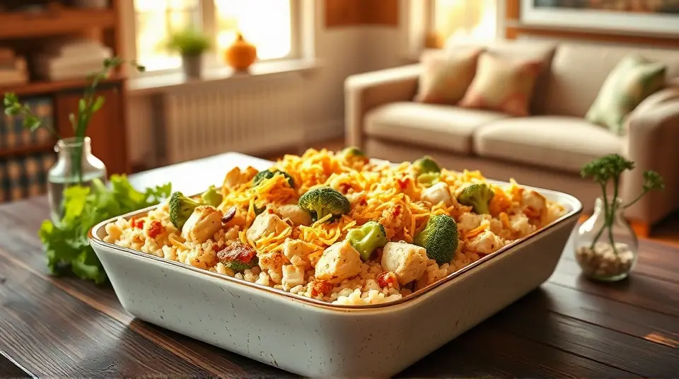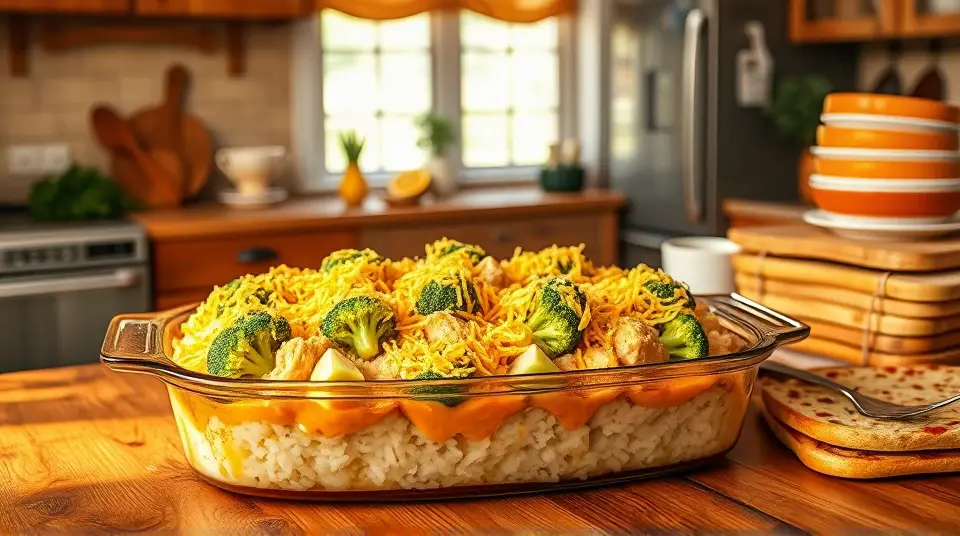 Broccoli Cheddar Chicken and Rice Casserolellm