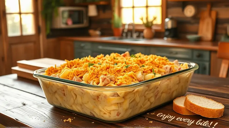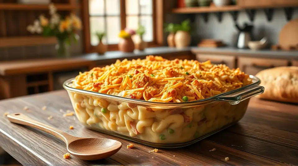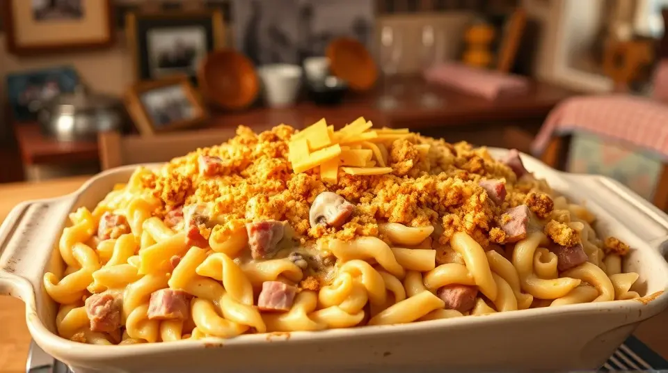 # Leftover Ham Noodle Casserole 🍽️🍖 This comforting casserole transforms your leftover holiday ham into a creamy, cheesy delight. Packed with flavor and goodness, it's an easy way to repurpose ham while satisfying the whole family. Whether it's a cozy weeknight meal or a potluck dish, this casserole is sure to impress! ## Ingredients ### For the casserole - 8 ounces egg noodles (or any pasta you prefer) - 2 cups diced leftover ham - 1 cup frozen peas (or mixed veggies) - 1 can (10.5 ounces) cream of mushroom soup - 1 cup shredded cheddar cheese - 1/2 cup milk - 1/2 teaspoon garlic powder - 1/2 teaspoon onion powder - Salt and pepper to taste ### For the topping - 1 cup crushed buttery crackers (like Ritz) - 2 tablespoons melted butter - 1/4 cup additional shredded cheese (optional) ## Instructions 1. Preheat your oven to 350°F (175°C) and grease a 9x13-inch baking dish. 2. Cook the egg noodles according to the package instructions. Drain and set aside. > 🍜 You can also use whole wheat noodles or gluten-free pasta for a healthier twist! 3. In a large bowl, combine the diced ham, cooked noodles, frozen peas, cream of mushroom soup, shredded cheese, milk, garlic powder, onion powder, salt, and pepper. Stir until everything is well mixed. 4. Pour the mixture into the prepared baking dish, spreading it out evenly. 5. In a small bowl, mix the crushed crackers with melted butter. Sprinkle over the casserole, adding additional cheese if desired for a cheesier topping. 6. Bake for 25-30 minutes, until bubbly and golden brown on top. Remove from the oven and let cool for a few minutes before serving. > 🔥 If you like a crunchier topping, you can place the casserole under the broiler for the last 5 minutes of baking—just watch closely to avoid burning! ## Variations - **Vegetarian**: Substitute the ham with additional vegetables such as chopped bell peppers, mushrooms, or spinach for a meat-free version. You might also add beans for extra protein! 🌱 - **Spicy**: Add diced jalapeños or a dash of hot sauce to kick up the heat. This will give your casserole a spicy twist that pairs well with the creaminess. - **Herb-infused**: Mix in 1 teaspoon of dried thyme or rosemary to add a fragrant, earthy note that enhances the dish. - **Lower sodium**: Use sodium-reduced soup and rinse your ham to reduce salt content without compromising flavor. This Leftover Ham Noodle Casserole is a versatile dish that makes sure nothing goes to waste while delivering delicious comfort food to your table. Enjoy every cheesy, hearty bite! 😋Images