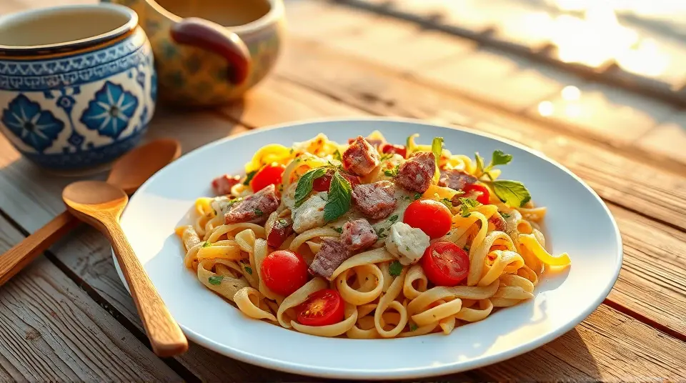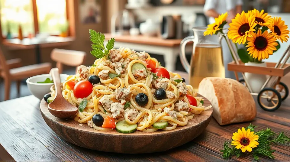 # Zesty Tuna Pasta Salad π₯π This Tuna Pasta Salad is a refreshing and vibrant dish that's perfect for summer picnics, potlucks, or a quick weekday meal. With its zesty dressing and crunchy veggies, this salad will tantalize your taste buds and leave you wanting more! Feel free to customize it with your favorite ingredients, making it a dish that everyone can enjoy. ## Ingredients ### For the pasta salad - 8 oz. of pasta (fusilli or penne work great) - 1 can (5 oz.) of tuna in water, drained - 1 cup of cherry tomatoes, halved - 1/2 cup of cucumber, diced - 1/4 cup of red onion, finely chopped - 1/4 cup of black olives, sliced - 1/4 cup of sweet corn (canned or frozen, thawed) - 1/4 cup of bell pepper, diced (any color) - Fresh parsley or basil for garnish ### For the dressing - 1/4 cup of olive oil - 2 tablespoons of lemon juice (freshly squeezed for best flavor) - 1 teaspoon of Dijon mustard - 1 clove of garlic, minced - Salt and pepper to taste - A pinch of red pepper flakes (optional, for a spicy kick) ## Instructions - Cook the pasta according to package instructions until al dente. Drain and rinse under cold water to cool it down. > π₯ Rinsing the pasta helps prevent it from becoming sticky and allows the dressing to coat each piece evenly. - In a large mixing bowl, combine the drained tuna, cherry tomatoes, cucumber, red onion, olives, sweet corn, and bell pepper. - In a separate bowl, whisk together the olive oil, lemon juice, Dijon mustard, minced garlic, salt, and pepper, along with the red pepper flakes if you're using them. - Add the cooled pasta to the vegetable and tuna mixture, then pour the dressing over the top. Gently toss everything together until well coated. > π₯ Letting the salad sit for at least 30 minutes in the refrigerator allows the flavors to meld beautifully! - Serve chilled, garnished with fresh parsley or basil on top. ## Variations - **Protein-packed**: Add a boiled egg or chickpeas for extra protein and texture. π₯ - **Vegetarian**: Substitute tuna with chickpeas or drained canned lentils for a tasty plant-based version. π± - **Creamy**: For a creamier take, mix in 1/4 cup of Greek yogurt or mayonnaise into the dressing. - **Herb-infused**: Try adding fresh dill or chives to the dressing for an herby twist. > πΏ Feel free to experiment with any seasonal veggies you have on handβthis recipe is incredibly versatile! Indulge in this Tuna Pasta Salad and bring a flavorful burst to your dining table! Enjoy! πImages