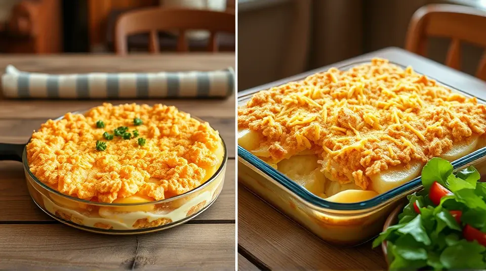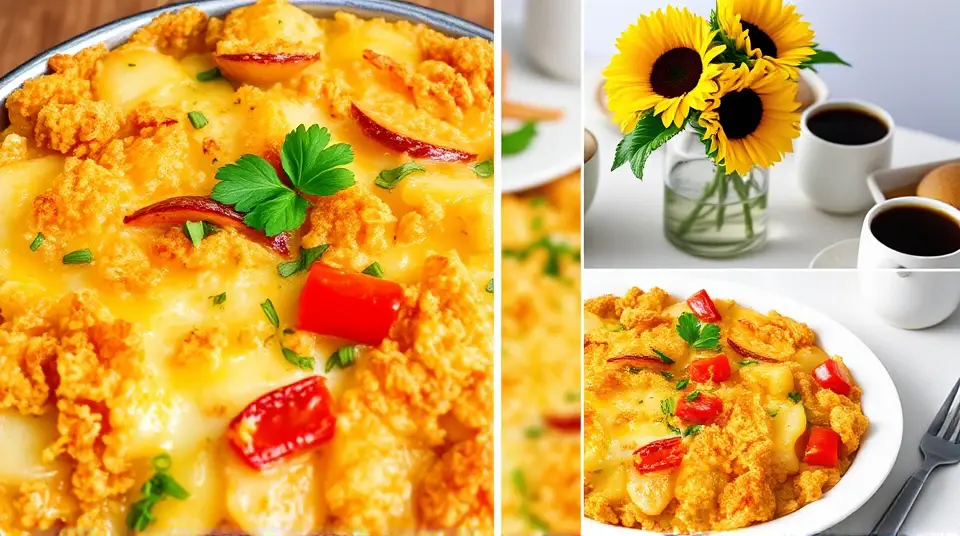 # O'Brien's Potato Casserole 🥔🧀 This hearty and comforting casserole is perfect for family gatherings or a cozy dinner at home. With layers of creamy potatoes, colorful bell peppers, and savory cheese, it's a delightful dish that will warm your heart and satisfy your taste buds. The combination of textures and flavors makes it a standout on any table. Pair it with a side salad for a complete meal! 🥗✨ ## Ingredients ### For the casserole - 4 large russet potatoes, peeled and thinly sliced - 1 cup of diced green bell pepper - 1 cup of diced red bell pepper - 1 small onion, finely chopped - 2 cups of shredded cheddar cheese - 1 cup of sour cream - 1 cup of milk - 3 tablespoons of butter - 1 teaspoon of garlic powder - 1 teaspoon of paprika - Salt and pepper to taste ### For the topping - 1 cup of crushed cornflakes - 2 tablespoons of melted butter - 1 tablespoon of chopped fresh parsley (for garnish) ## Instructions - Preheat your oven to 350°F (175°C) and grease a 9x13-inch baking dish. > 🔥 Preheating the oven is crucial for even cooking. Make sure to set it right before you start prepping! - In a large skillet, melt the butter over medium heat. Sauté the onions and bell peppers until they are softened, about 5-7 minutes. Remove from heat. - In a mixing bowl, combine the sour cream, milk, garlic powder, paprika, salt, and pepper. Mix well to create a creamy sauce. - Layer half of the sliced potatoes in the prepared baking dish. Top with half of the sautéed vegetables and half of the cheese. Pour half of the creamy sauce over the layers. - Repeat the layers with the remaining potatoes, vegetables, cheese, and creamy sauce. > 🥔 For extra flavor, consider adding diced cooked bacon or ham between the layers! - Bake in the preheated oven for 45 minutes, or until the potatoes are tender. - While the casserole is baking, mix the crushed cornflakes with melted butter in a small bowl. - After 45 minutes, remove the casserole from the oven and sprinkle the cornflake mixture on top. Return to the oven and bake for an additional 10-15 minutes, until golden brown and crispy. - Remove from the oven, let cool slightly, and garnish with chopped parsley before serving. > 🌟 Allowing the casserole to sit for about 10 minutes before serving will make it easier to cut into squares without falling apart. ## Variations - **For a spicy kick**: Add diced jalapeños or a pinch of cayenne pepper to the vegetable mixture. - **Vegetarian**: Omit any meat ingredients and consider adding more vegetables, such as spinach or mushrooms. - **Cheesy delight**: Mix in a variety of cheeses, like mozzarella or pepper jack, for an extra cheesy flavor. - **Make ahead**: Prepare the casserole up to the baking step, cover it with foil, and refrigerate for up to a day. When you're ready to bake, adjust the baking time as needed, adding time if it's coming straight from the fridge. Enjoy this delightful O'Brien's Potato Casserole as a comforting meal that friends and family will love! 🥰🥔🍽️Images