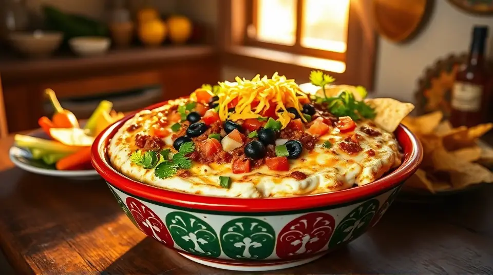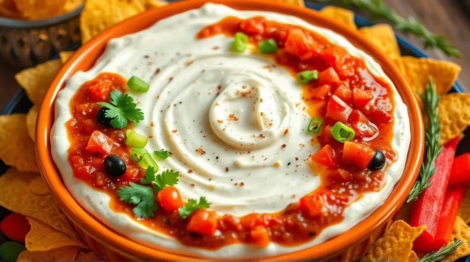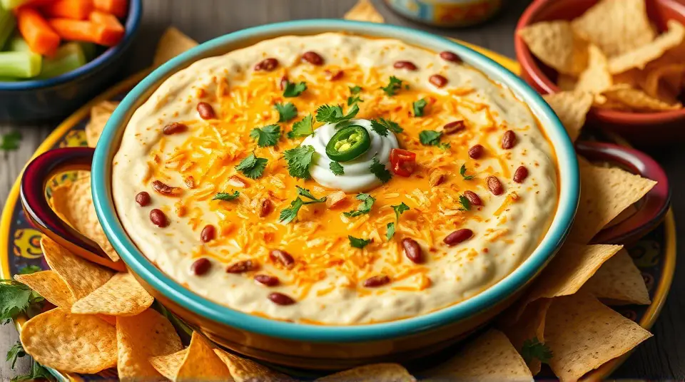 # Zesty Creamy Taco Dip 🌮✨ This vibrant and flavorful dip is perfect for parties, game day, or as a standout appetizer at any gathering. Creamy, zesty, and packed with layers of flavor, this taco dip is sure to be a crowd-pleaser! Pair it with crispy tortilla chips, fresh veggies, or even spoon it over nachos for an extra kick of deliciousness. 🎉 ## Ingredients ### For the dip - 8 oz cream cheese, softened - 1 cup sour cream - 1 cup shredded cheese (cheddar or Mexican blend) - 1 packet taco seasoning (or homemade) - 1 can (15 oz) refried beans - 1/2 cup salsa (your favorite variety) - 1/2 cup diced tomatoes - 1/4 cup chopped green onions - 1/4 cup chopped black olives (optional) - Fresh cilantro for garnish (optional) ### For serving - Tortilla chips - Fresh vegetable sticks (carrots, celery, bell peppers) ## Instructions 1. In a large mixing bowl, combine the softened cream cheese and sour cream. Beat together until smooth and creamy. 2. Stir in the taco seasoning, refried beans, and salsa until everything is well-blended. 3. Gently fold in the shredded cheese, diced tomatoes, green onions, and black olives (if using) until evenly mixed. 4. Transfer the mixture to a serving dish, smoothing out the top. 5. Cover with plastic wrap and refrigerate for at least 1 hour to allow the flavors to meld together. 6. Before serving, garnish with fresh cilantro for an extra touch of color and flavor. > 🥄 For an extra creamy texture, let the mixture sit at room temperature for about 15 minutes before serving. This makes it easier to scoop and adds a lovely buttery consistency! ## Variations - **Spicy**: Add diced jalapeños or a splash of hot sauce for an added kick! 🔥 - **Meat Lover's**: Layer in cooked ground beef or turkey seasoned with taco spices for a heartier dip. - **Veggie Delight**: Substitute the refried beans with mashed avocado for a fresher, lighter twist. - **Dairy-free**: Use vegan cream cheese and yogurt, and a dairy-free cheese blend for a plant-based option. Enjoy this creamy taco dip treasure at your next get-together, and watch it vanish in no time! 💖🌶️Images