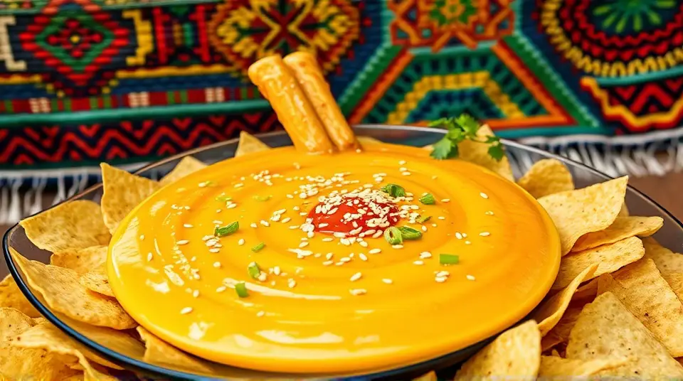 - Once the dip is ready, transfer it to a serving bowl and garnish with chopped green onions and sesame seeds.
