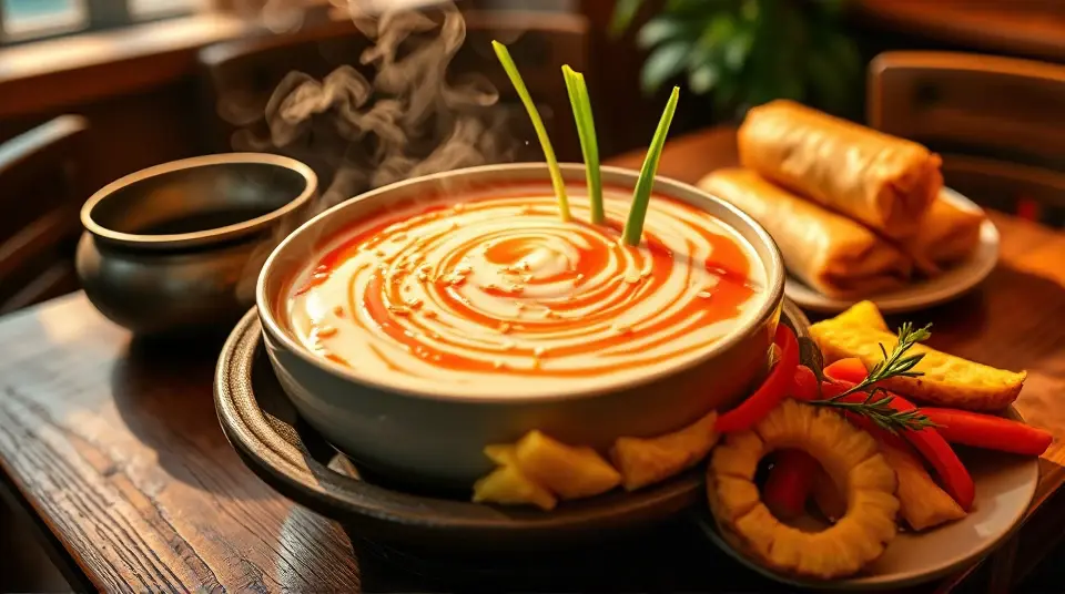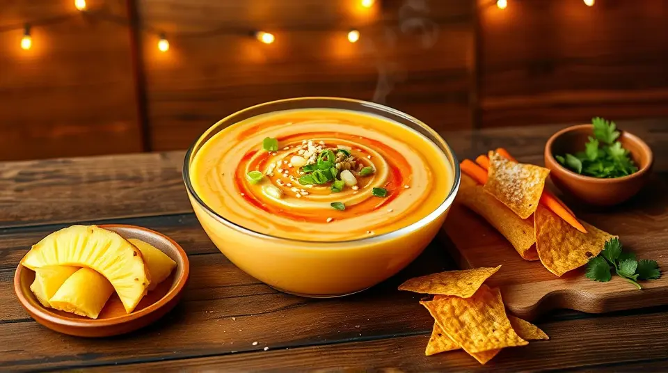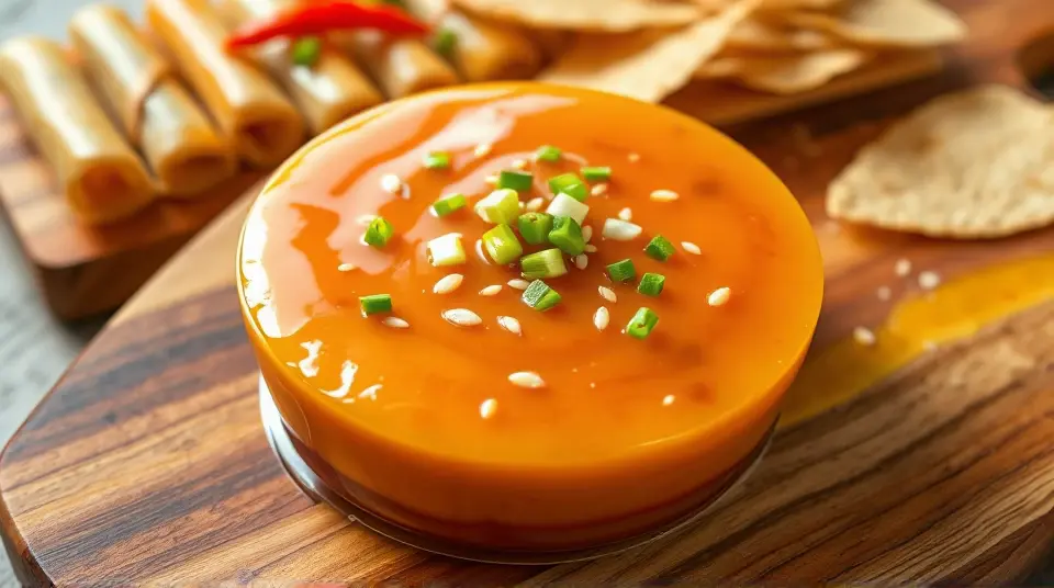 # Restaurant Style Sweet and Sour Dip 🍯🍍 This delightful Sweet and Sour Dip combines the tangy flavor of pineapple with the sweetness of honey, creating a perfect blend that's irresistible for any occasion! Ideal for parties, game nights, or as an appetizer, this dip is versatile and easy to prepare. Serve it with crispy spring rolls, fresh veggies, or tortilla chips for a burst of flavor that will leave your guests asking for more! 🎉 ## Ingredients ### For the dip - 1 cup of crushed pineapple (drained) - 1/2 cup of honey - 1/4 cup of ketchup - 2 tablespoons of soy sauce - 1 tablespoon of rice vinegar - 1 teaspoon of garlic powder - 1 teaspoon of ground ginger - 1 tablespoon of cornstarch (optional for thickening) ### For garnish - Chopped green onions - Sesame seeds ## Instructions - In a mixing bowl, combine the crushed pineapple, honey, ketchup, soy sauce, and rice vinegar. Stir until well blended. > 🍍 Make sure to drain the pineapple thoroughly to avoid a watery dip. The crushed consistency provides a good texture without overwhelming the other flavors. - Add garlic powder and ground ginger to the mixture, stirring to combine thoroughly. - If you prefer a thicker dip, mix the cornstarch with a tablespoon of water to form a slurry, then add it to the dip. Heat the mixture in a saucepan over medium heat until it thickens, stirring constantly. > 🔥 Heating the dip brings out the flavors and thickens it nicely. If you want to serve it cold, you can skip this step and enjoy it as a refreshing dip! - Once the dip is ready, transfer it to a serving bowl and garnish with chopped green onions and sesame seeds. > 🌱 Fresh herbs can add an extra layer of flavor. Feel free to add cilantro or mint for a twist! ## Variations - **Spicy**: Add a dash of sriracha or red pepper flakes for a kick! 🌶️ - **Fruit-Forward**: Incorporate diced bell peppers or mango chunks for added sweetness and texture. - **Low-Sugar**: Substitute honey with a sugar-free sweetener of your choice to keep the carbs down. - **Herbaceous**: Mix in fresh cilantro or basil for a refreshing flavor boost. - **Creamy**: Stir in a tablespoon of cream cheese for a richer, creamy texture. With its vibrant flavors and simple preparation, this Restaurant Style Sweet and Sour Dip is sure to elevate any snack spread and impress your guests! Enjoy! 🥳Images