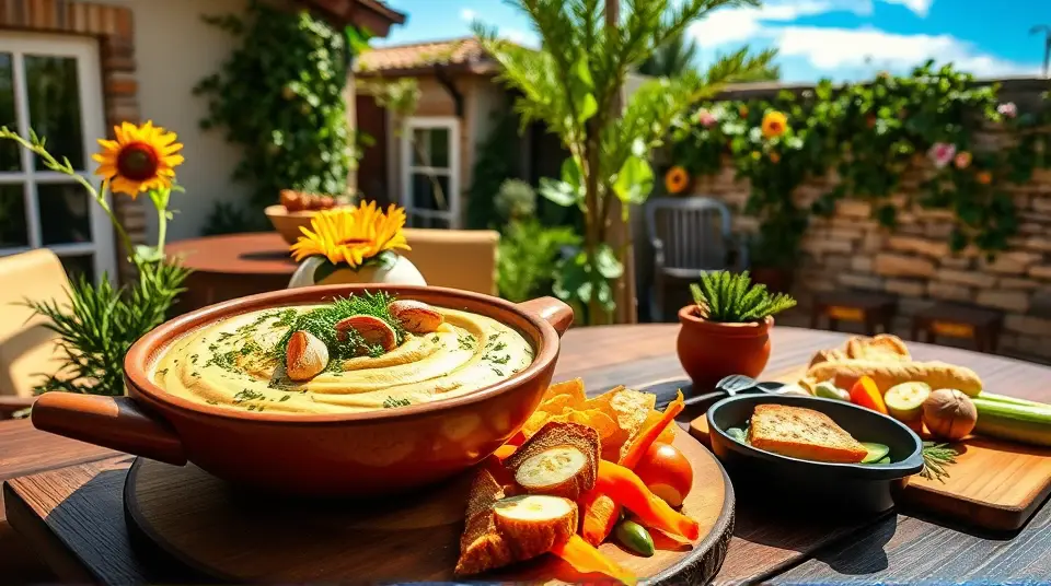 # Savory Hummus with Roasted Garlic and Herbs 🥙🌱 This savory hummus recipe offers a delightful twist on the classic dip, incorporating roasted garlic and a medley of fresh herbs. Perfect for a snack, appetizer, or a healthy addition to any meal, this hummus is creamy, rich, and packed with flavor. Serve it with pita chips, fresh veggies, or spread it on a sandwich — it’s sure to impress! ## Ingredients ### For the hummus - 1 can (15 oz) chickpeas, drained and rinsed - 1/4 cup tahini - 2 tablespoons olive oil - 1-2 heads of roasted garlic (about 6-8 cloves) - Juice of 1 lemon - 1/2 teaspoon cumin - Salt and pepper to taste - Water (as needed for consistency) ### For the herb mix - 1/4 cup fresh parsley, chopped - 1/4 cup fresh cilantro, chopped - 1 tablespoon fresh dill (or rosemary for a different twist) ## Instructions - Start by making the roasted garlic: Preheat your oven to 400°F (200°C). Slice the tops off the garlic heads, drizzle with olive oil, wrap in foil, and roast for 30-35 minutes until soft and caramelized. Let cool, then squeeze the roasted cloves out of their skins. > 🥄 Roasting the garlic amplifies its natural sweetness, giving the hummus a subtle depth of flavor. - In a food processor, combine the chickpeas, tahini, roasted garlic, olive oil, lemon juice, cumin, salt, and pepper. Process until smooth, adding water a tablespoon at a time until the hummus reaches your desired consistency. > 🧂 Taste the mixture as you go! Feel free to adjust the salt, lemon, and garlic to suit your preferences. - Next, stir in the chopped parsley, cilantro, and dill (or rosemary) until evenly distributed. - Transfer the hummus to a serving bowl, drizzle a little more olive oil on top, and sprinkle with additional herbs if desired. ## Variations - **Spicy**: Add a pinch of cayenne pepper or a splash of hot sauce for a kick of heat! 🌶️ - **Mediterranean**: Toss in some sun-dried tomatoes or olives for an extra punch of flavor and color. - **Roasted Vegetable**: Blend in some roasted red peppers or beets for an earthy sweetness and stunning color. - **Low-FODMAP**: Substitute garlic with a pinch of garlic-infused olive oil for a gentler flavor while avoiding gastrointestinal issues. ## Serving Suggestions - Pair your savory hummus with whole grain pita chips, fresh carrot sticks, cucumber slices, or bell pepper strips. - Use it as a spread on sandwiches or wraps for added flavor and nutrition. - For a Mediterranean-inspired platter, serve it alongside falafel, tabbouleh, and tzatziki. Enjoy your savory hummus as a delicious and healthy treat that’s bursting with flavor! 😋🥗Images