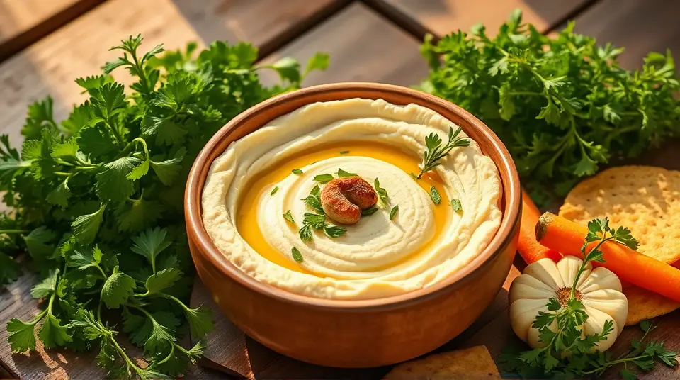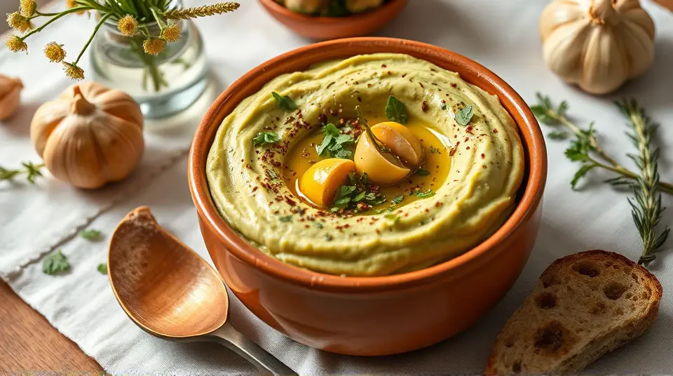 Savory Hummus with Roasted Garlic and Herbs 🥙🌱
