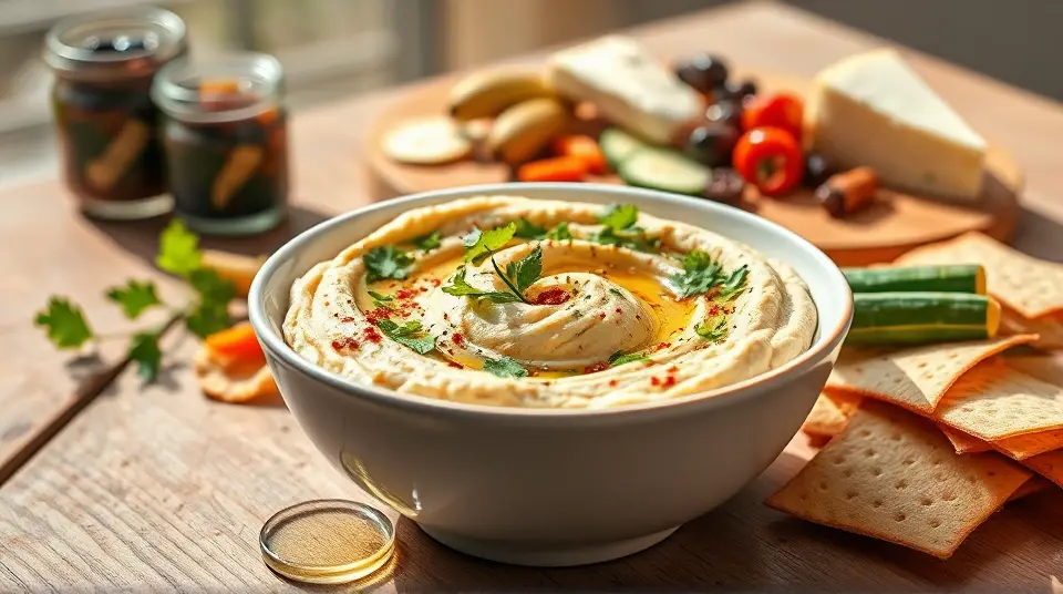 Enjoy your savory hummus as a delicious and healthy treat that’s bursting with flavor! 😋🥗