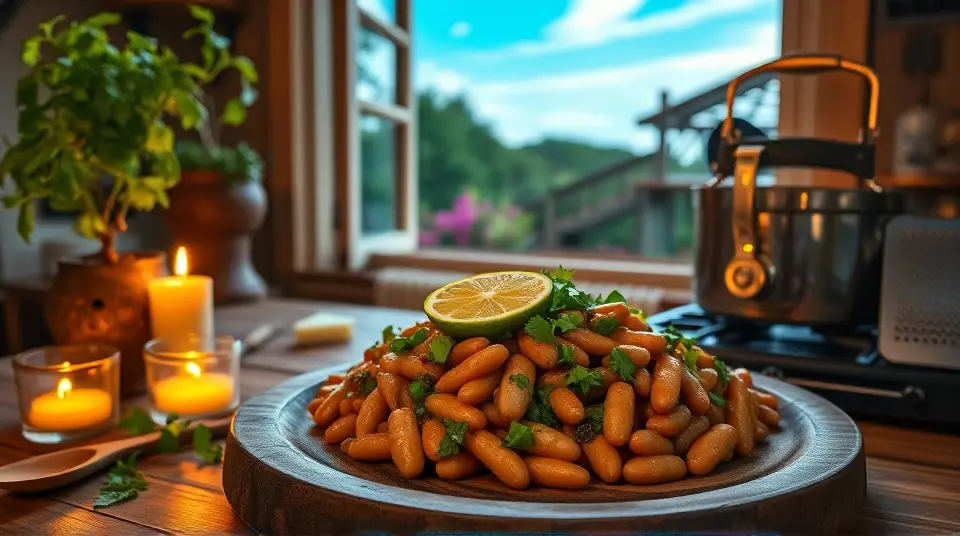 # Zesty Cilantro Pinto Beans 🌿🍽️ This delightful side dish elevates traditional pinto beans with zesty lime and fresh cilantro, creating a burst of flavor that pairs perfectly with grilled meats, tacos, or even a hearty salad. Packed with protein and fiber, these beans are not only delicious but also nourishing—ideal for any meal! ## Ingredients ### For the beans - 2 cups dried pinto beans (or 4 cans of pinto beans, drained and rinsed) - 6 cups water (or low-sodium vegetable broth) - 1 medium onion, diced - 4 cloves garlic, minced - 1 teaspoon ground cumin - 1 teaspoon smoked paprika - 1 bay leaf - Salt and pepper to taste ### For the zesty finishing touch - Juice of 2 limes - 1/2 cup fresh cilantro, chopped - 1 jalapeño, finely chopped (optional, for heat) - 1 tablespoon olive oil - Additional lime wedges for serving ## Instructions 1. **Soak the beans**: If using dried pinto beans, rinse them under cold water and soak them in a bowl overnight. Drain before cooking. 2. **Cook the beans**: In a large pot, combine the soaked beans (or the canned beans), water (or broth), diced onion, minced garlic, cumin, smoked paprika, and the bay leaf. Bring to a boil, then reduce to a simmer. - If using dried beans, simmer for 1.5 to 2 hours, or until the beans are tender. - If using canned beans, simmer for 20-30 minutes to allow flavors to meld. > 🕰️ If using a pressure cooker, you can reduce the cooking time significantly. Just follow the manufacturer’s instructions for cooking pinto beans! 3. **Season the beans**: Once the beans are cooked (tender but not mushy), remove the bay leaf and season with salt and pepper to taste. 4. **Add the finishing touch**: Stir in the lime juice, chopped cilantro, jalapeño (if using), and olive oil. Mix well and allow to sit for about 5 minutes for the flavors to combine. 5. **Serve**: Serve warm with additional lime wedges on the side. > 🍋 Squeezing fresh lime juice just before serving really brightens up the dish, making it wonderfully refreshing! ## Variations - **Spicy**: For an extra kick, add a pinch of cayenne pepper or chipotle powder when cooking. - **Smoky**: Replace olive oil with a smoky flavored oil or add smoked sausage during the bean cooking process for a hearty twist. - **Herby**: Swap out cilantro for fresh parsley or chives for a different herbaceous flavor. - **Slow Cooker**: Combine all ingredients in a slow cooker and cook on low for 6-8 hours, perfect for a hassle-free dish! Enjoy these zesty cilantro pinto beans as a staple on your dinner table, and watch them disappear! 🌮🌿Images