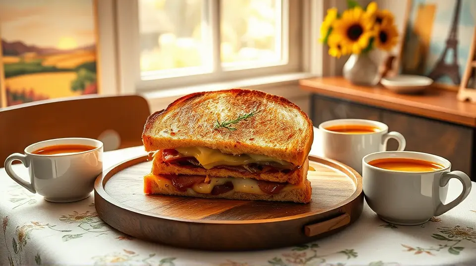 This gourmet twist on a classic grilled cheese sandwich is both indulgent and irresistible. Featuring a luscious blend of artisanal cheeses, fresh herbs, and a hint of sweetness from caramelized onions, this grilled cheese is sure to impress at brunch, lunch, or any time you're craving comfort food with flair. Pair it with a side of tomato bisque or a fresh salad for a complete meal! 🍅🥗