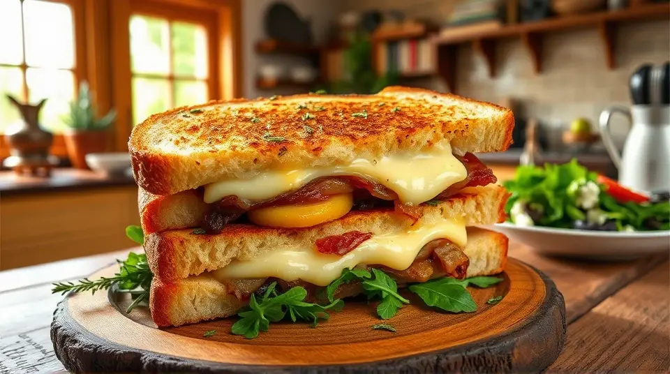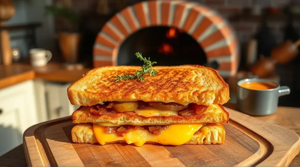 # Fancy Decadent Grilled Cheese 🧀✨ This gourmet twist on a classic grilled cheese sandwich is both indulgent and irresistible. Featuring a luscious blend of artisanal cheeses, fresh herbs, and a hint of sweetness from caramelized onions, this grilled cheese is sure to impress at brunch, lunch, or any time you're craving comfort food with flair. Pair it with a side of tomato bisque or a fresh salad for a complete meal! 🍅🥗 ## Ingredients ### For the sandwich - 4 slices of thick, artisanal sourdough bread - 1/2 cup of aged cheddar cheese, shredded - 1/2 cup of Gruyère cheese, shredded - 1/2 cup of creamy goat cheese - 1 medium onion, thinly sliced - 2 tablespoons of butter - 1 tablespoon of olive oil - Fresh thyme leaves, for garnish - A drizzle of honey (optional) ### For the caramelized onions - 1 tablespoon of olive oil - 1 tablespoon of butter - Salt, to taste - 1 teaspoon of balsamic vinegar (optional) ## Instructions 1. **Caramelize the onions**: In a skillet, heat the olive oil and butter over medium heat. Add the sliced onions and a pinch of salt. Cook, stirring occasionally, for about 15-20 minutes, or until the onions are soft and golden brown. If desired, stir in balsamic vinegar for added flavor. Remove from heat and set aside. 2. **Assemble the sandwich**: On two slices of sourdough, spread a generous layer of goat cheese. Top with equal portions of aged cheddar and Gruyère. Spoon some caramelized onions over the cheese, and top with the remaining slices of sourdough. 3. **Prepare to grill**: In a clean skillet, heat the remaining butter and olive oil over medium heat. Place the sandwiches in the skillet, and cook for about 4-5 minutes on each side, or until the bread is golden brown and crispy, and the cheese has melted. > ✨ For a little extra flair, gently press the sandwich with a spatula to encourage a crispy crust while cooking. 4. **Serving**: Once done, remove the sandwiches from the skillet and let them rest for a minute. Then, slice them in half diagonally and sprinkle fresh thyme leaves on top. Drizzle with a touch of honey for a delicious sweet contrast if desired. > 🍯 The honey adds a delightful sweetness that complements the sharpness of the cheeses beautifully! ## Variations - **Vegan**: Substitute the cheeses with vegan alternatives like cashew cheese or store-bought vegan cheese. Use vegan butter for grilling. - **Add greens**: Layer in some fresh spinach, arugula, or roasted peppers for additional flavor and nutrition. - **Herb-infused**: Mix in some fresh basil or parsley into the cheese mixture for added freshness. - **Spicy kick**: Add red pepper flakes or a few slices of jalapeños for a spicy version of this luxurious comfort food. Enjoy the blissful melty goodness of this Fancy Decadent Grilled Cheese! 🥪💖Images