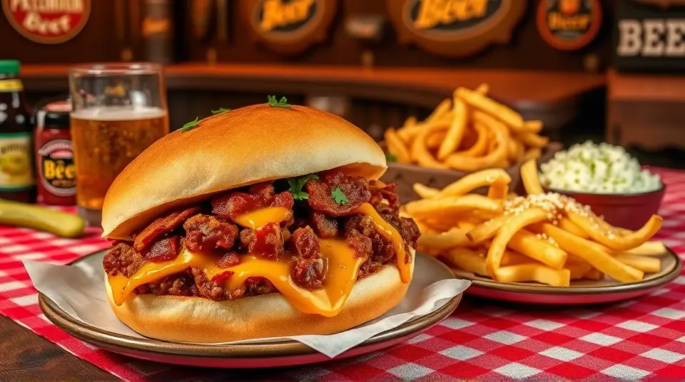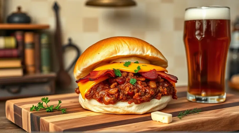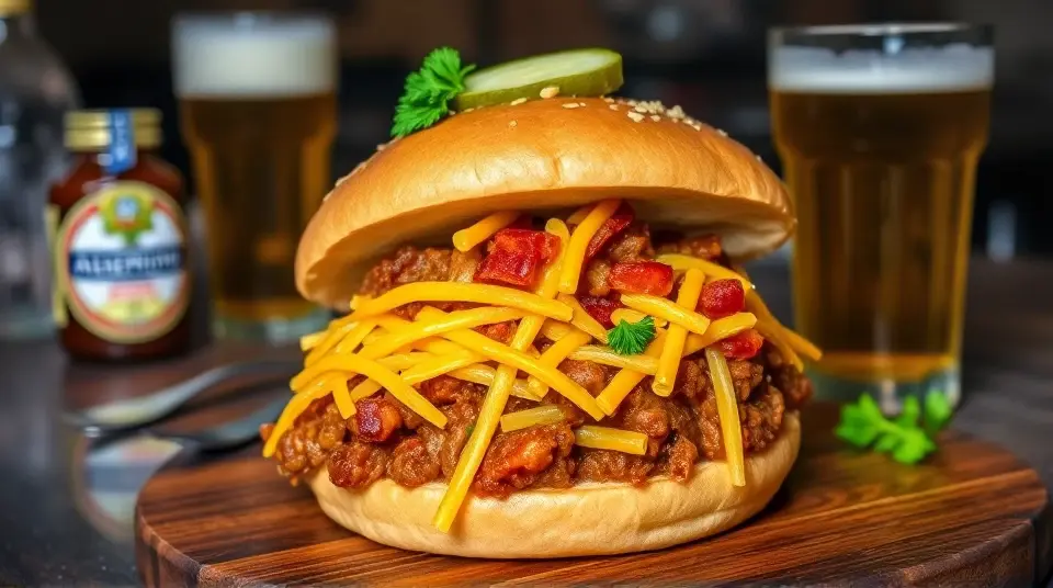 # Bacon Beer and Cheese Sloppy Joes 🍔🥓🧀 Get ready for a flavor-packed twist on the classic Sloppy Joe! This recipe combines crispy bacon, hearty ground beef, and gooey melted cheese, all brought together with a splash of your favorite beer. It's comfort food at its finest, perfect for game day or a laid-back weeknight dinner. Serve these tangy, meaty delights on your favorite rolls, and watch them disappear! ## Ingredients ### For the Sloppy Joe mixture - 1 lb ground beef - 6 strips of bacon, chopped - 1 medium onion, finely diced - 2 cloves garlic, minced - 1 cup beer (lager or your choice) - 1 cup shredded cheddar cheese - 1 cup ketchup - 1 tablespoon Worcestershire sauce - 1 tablespoon Dijon mustard - 1 teaspoon smoked paprika - Salt and pepper, to taste ### For serving - 4-6 hamburger rolls (soft and sturdy) - Pickles (optional, for topping) - Fresh parsley or cilantro, chopped (for garnish) ## Instructions 1. **Cook the bacon**: In a large skillet over medium heat, cook the chopped bacon until crispy. Use a slotted spoon to transfer the bacon to a paper towel-lined plate, leaving the bacon fat in the pan. 2. **Sauté the veggies**: In the same skillet, add the diced onion and minced garlic to the bacon fat. Sauté until the onion is translucent and fragrant, about 5 minutes. 3. **Brown the beef**: Increase the heat to medium-high and add the ground beef to the skillet. Cook until browned and cooked through, breaking it up with a spatula as it cooks. Drain any excess fat, if necessary. 4. **Combine ingredients**: Stir in the cooked bacon, beer, ketchup, Worcestershire sauce, Dijon mustard, smoked paprika, and season with salt and pepper. Bring the mixture to a simmer and cook for about 10 minutes, allowing the flavors to meld and the mixture to thicken slightly. 5. **Add the cheese**: Stir in the shredded cheddar cheese until melted and well combined. 6. **Assemble the Sloppy Joes**: Spoon generous amounts of the mixture onto the bottom halves of the hamburger rolls. Top with pickles, if desired, and garnish with fresh parsley or cilantro. Place the top halves of the rolls on each sandwich. 7. **Serve and enjoy!**: Serve your bacon beer and cheese Sloppy Joes immediately, with a side of chips, fries, or a crisp salad. > 🍻 Feel free to get creative with the beer selection! A stout or even a stout-infused sauce will add a rich, deep flavor, while a light lager keeps it bright and refreshing. Give it a taste test and find your favorite pairing! ## Variations - **Spicy Kick**: Add diced jalapeños or a splash of hot sauce to the beef mixture for a kick of heat! 🌶️ - **Beer-Free**: Substitute the beer with beef broth or soda (like root beer or cola) for a kid-friendly version that keeps the flavor punchy. - **Cheese Lovers**: Experiment with different cheese blends, like Monterey Jack or pepper jack, for a fusion of flavors and a delightful stringy texture. - **Vegetarian**: Swap the ground beef for a combination of black beans and quinoa, and use veggie bacon or omit the bacon completely for a delicious plant-based option. Just remember to adjust the seasoning accordingly! Enjoy your culinary adventure with these savory Bacon Beer and Cheese Sloppy Joes! 😋🍻Images