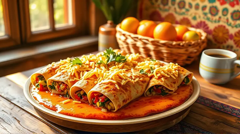 Cheesy Veggie Breakfast Enchiladas 🌯🌶️