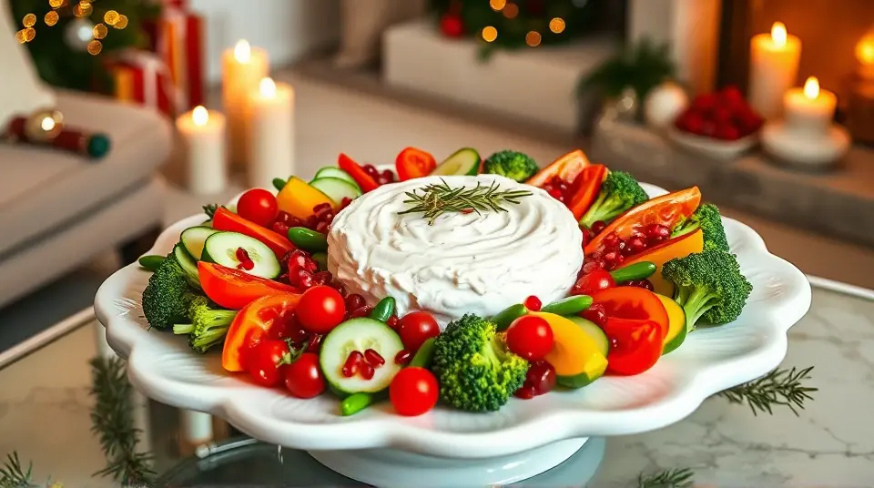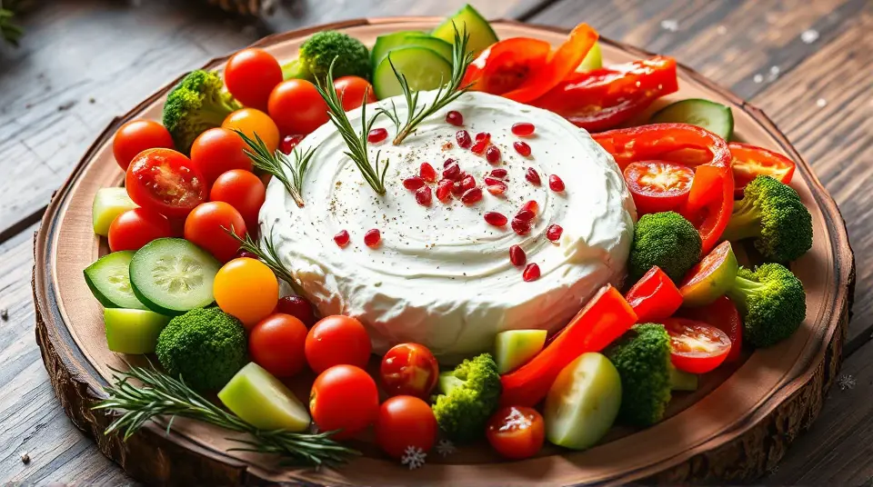 Creamy Feta Dip with Red and Green Veggies for Christmasllm