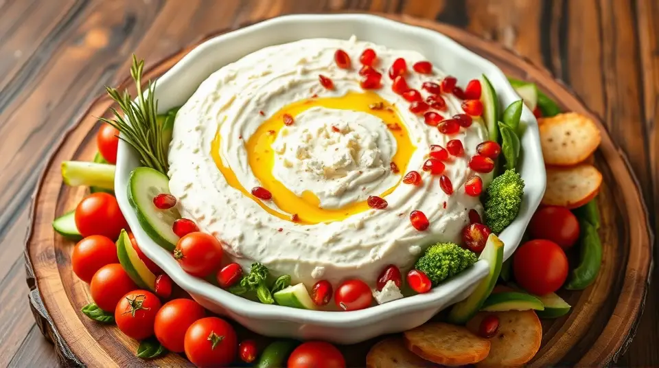 # Creamy Feta Dip with Red and Green Veggies for Christmas ππ₯ This festive dip is a perfect addition to your holiday spread! Creamy and tangy feta blends beautifully with special spices and herbs. Paired with vibrant red and green veggies, it creates a visually stunning and delicious centerpiece for gatherings. You can serve it as a starter, or enjoy it alongside your main dishes. Spread it on crackers, or use it as a dip for fresh veggies! ## Ingredients ### For the creamy feta dip - 8 oz (225g) feta cheese, crumbled - 1 cup plain Greek yogurt - 1/4 cup cream cheese, softened - 2 tbsp olive oil - 1 tbsp lemon juice - 1 tsp minced garlic - 1 tsp dried oregano - 1/2 tsp red pepper flakes (adjust to taste) - Salt and pepper to taste ### For the veggie platter - 1 cup cherry tomatoes (red and yellow varieties) π - 1 cup cucumber, sliced into rounds - 1 cup red bell pepper, cut into strips - 1 cup broccoli florets - 1 cup snap peas - 1/4 cup pomegranate seeds (for a festive touch) β¨ - Fresh rosemary sprigs for garnishing ## Instructions - In a medium bowl, combine the crumbled feta cheese, Greek yogurt, cream cheese, olive oil, lemon juice, minced garlic, oregano, red pepper flakes, salt, and pepper. > π₯ Blend until smooth and creamy, using a fork or an electric mixer for best results. Adjust the seasonings to your taste. - Transfer the creamy feta dip to a serving dish and smooth the top with a spatula. - Arrange the red and green veggies around the dip in a colorful display. Sprinkle the pomegranate seeds on top of the dip for a festive pop of color. - Garnish with fresh rosemary sprigs for an extra holiday flair. > π This dip can be made a day ahead of time! Just store it in the refrigerator, covered, and let it sit at room temperature for about 30 minutes before serving to soften. ## Variations - **Herbed version**: Add fresh chopped herbs like parsley, dill, or basil for a burst of flavor. - **Spicy option**: Incorporate jalapeΓ±os or finely chopped chili for a kick! - **Nuts and seeds**: Mix in some chopped walnuts or sunflower seeds for added crunch and nutrition. - **Gluten-free**: Serve with gluten-free crackers or breadsticks to keep it allergy-friendly. This creamy feta dip will not only enliven your holiday table but will also impress your guests with its deliciousness and presentation. Enjoy! ππ₯Images