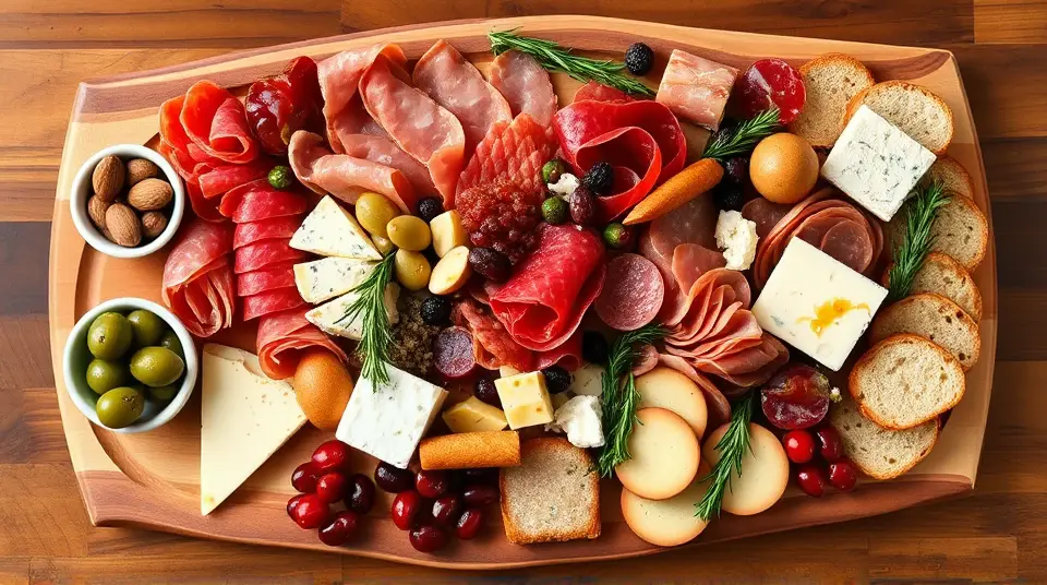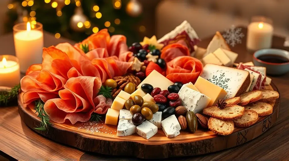 Christmas Hors d'oeuvre Platter with Meats and Cheesesllm