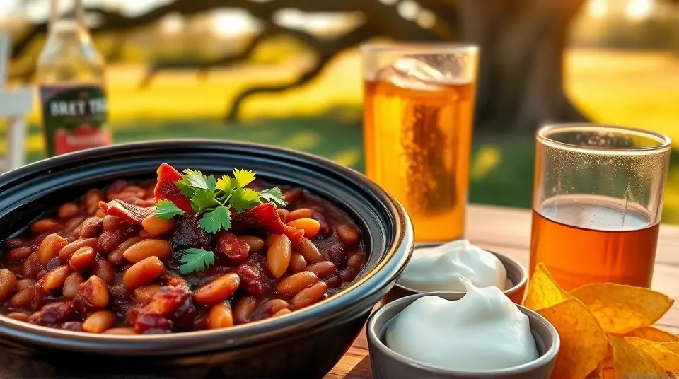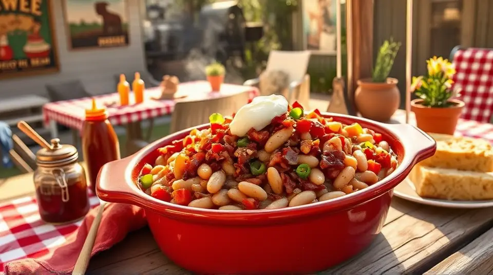 # Rusty's Slow Cooker Cowboy Beans 🌽🐮 These Slow Cooker Cowboy Beans are hearty, delicious, and packed with flavor! Perfect for a backyard BBQ or a cozy family dinner, they combine the robust tastes of smoky bacon, spicy jalapeños, and a sweet and tangy sauce that will have everyone reaching for seconds (or thirds!). This dish is super easy to make and can be customized with your favorite type of beans. Serve it up alongside cornbread or with tortilla chips for a delightful crunch! 🌶️🥖 ## Ingredients ### For the Beans - 1 pound dried pinto beans (or a mix of your favorite beans) - 4 slices of thick-cut bacon, chopped - 1 medium onion, diced - 2 cloves garlic, minced - 1-2 jalapeños, seeds removed and diced (adjust to taste) - 1 bell pepper, diced (any color) - 1 can (14.5 oz) diced tomatoes with green chilies - 2 cups chicken or vegetable broth - 1/2 cup BBQ sauce (your favorite brand) - 1 tablespoon brown sugar - 2 teaspoons chili powder - 1 teaspoon cumin - Salt and pepper to taste ### Optional Garnishes - Chopped green onions - Fresh cilantro - Shredded cheese - Sour cream ## Instructions 1. **Prep the Beans**: Rinse and soak the beans overnight in water, or quick soak them by boiling for 2 minutes and letting them sit for an hour. Drain and set aside. 2. **Cook the Bacon**: In a skillet over medium heat, cook the chopped bacon until crispy. Remove the bacon and let it drain on paper towels, reserving about 1 tablespoon of the bacon grease in the pan. 3. **Sauté the Vegetables**: In the same skillet, sauté the diced onion, garlic, jalapeños, and bell pepper in the bacon grease until softened, about 5-7 minutes. 4. **Combine Ingredients**: In your slow cooker, add the soaked beans, cooked vegetables, diced tomatoes, chicken broth, BBQ sauce, brown sugar, chili powder, cumin, and the crispy bacon. Stir everything together until well combined. 5. **Cook Slow**: Cover and cook on low for 6-8 hours or until the beans are tender. Check for seasoning and adjust with salt and pepper as needed. > 🥄 If you want extra depth of flavor, consider adding a splash of Worcestershire sauce or a teaspoon of smoked paprika to enhance the smokiness of the dish! 6. **Serve**: Once the beans are ready, spoon them into bowls and top with your favorite garnishes like green onions, cilantro, shredded cheese, or a dollop of sour cream. > 🍽️ These beans can also be served as filling for burritos or as a side dish for grilled meats. They freeze beautifully, so make a big batch and save some for later! ## Variations - **Vegetarian/Vegan**: Substitute bacon with a smoky vegan alternative or simply omit it; you can add liquid smoke for flavor if desired. Use vegetable broth instead of chicken broth. - **Spicy**: Add more jalapeños or mix in a can of chipotle peppers in adobo sauce to amp up the heat! 🌶️ - **Hearty Additions**: Toss in cooked ground beef or turkey for a meaty version of this dish. - **Canned Beans**: Short on time? Use three cans of drained and rinsed beans instead of dried beans. Reduce cooking time to 2-3 hours on low. With its robust flavors and comforting goodness, Rusty's Slow Cooker Cowboy Beans are sure to become a staple in your home! Happy cooking! 🍽️✨Images