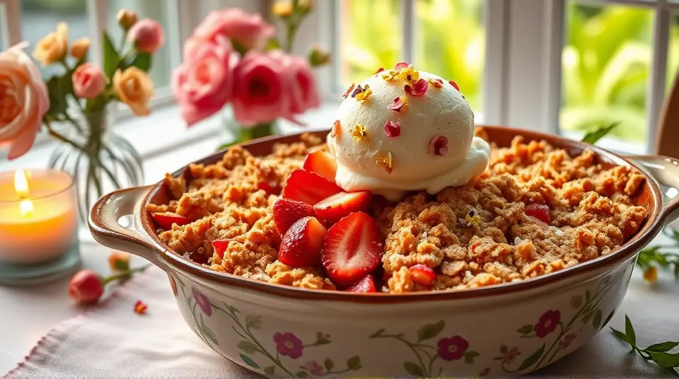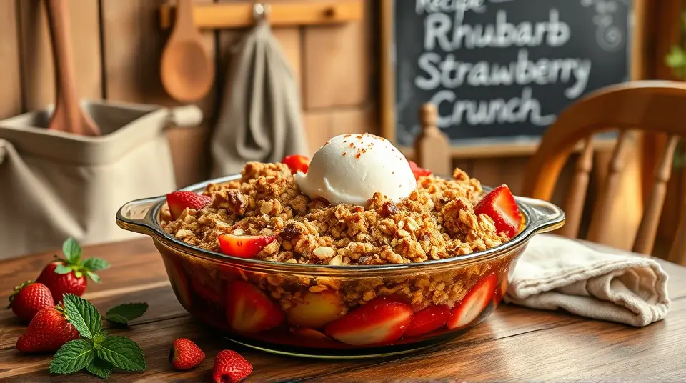 This delightful dessert combines the tartness of rhubarb with the sweetness of strawberries, all wrapped in a crispy, crumbly topping. It's perfect for spring and summer gatherings or as a cozy treat on a chilly evening. Serve it warm with a scoop of vanilla ice cream or a dollop of whipped cream for an indulgent dessert experience! 🍨✨