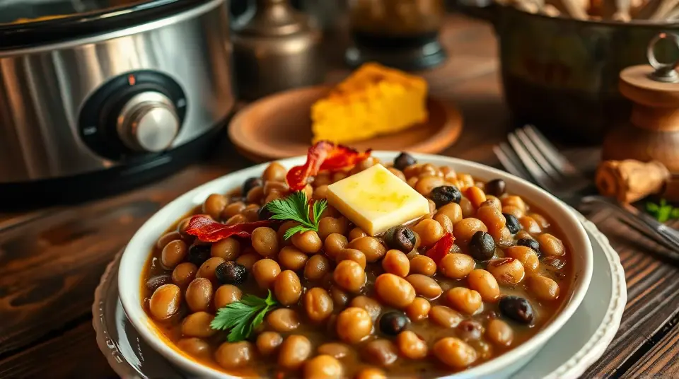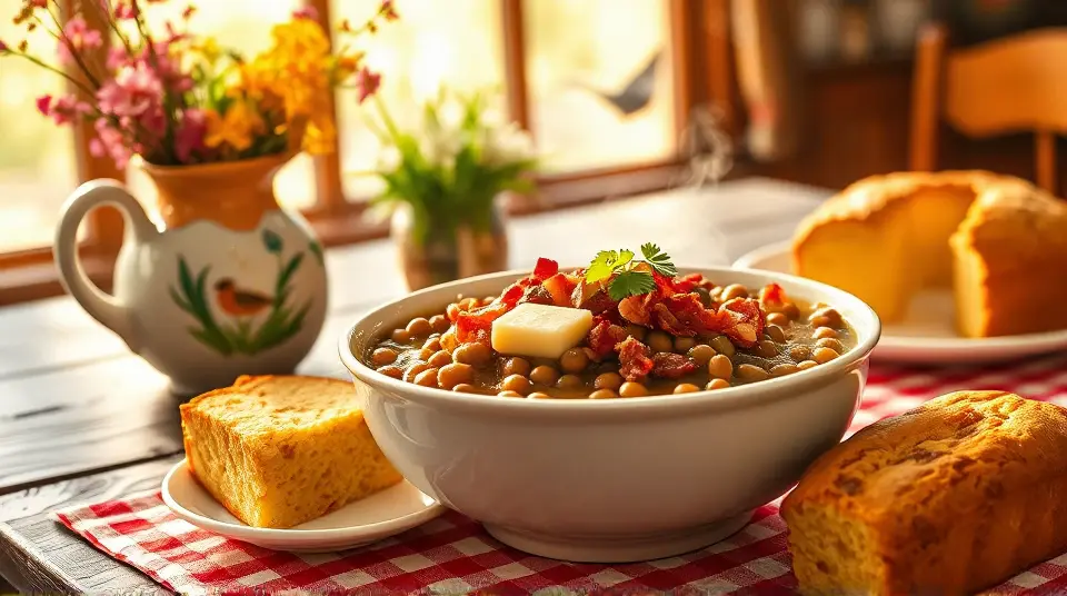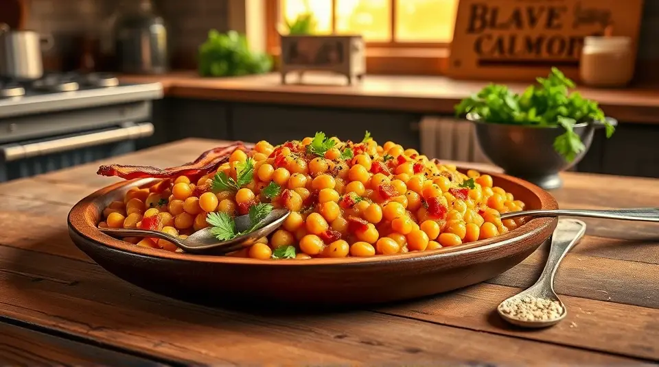 # Dave's Southern Comfort Black-Eyed Peas 🥘✨ This hearty and flavorful dish is a classic Southern comfort food that’s perfect for gatherings and celebrations. With its smoky bacon flavor and tender peas, it’s not just a side dish; it’s a warm hug on a plate! Enjoy it on New Year's Day for good luck or any day you crave something truly satisfying. ## Ingredients ### Main Ingredients - 2 pounds dried black-eyed peas - 12 cups water - 8 cubes chicken bouillon - 1 pound bacon (or your preferred pork) - 1/2 cup butter - 2 large yellow onions, chopped - 1 pound cooked ham, cut into bite-sized pieces - Salt and black pepper to taste ## Instructions 1. Rinse and sort the black-eyed peas, then place them in a large bowl. Cover them with several inches of cool water and let them soak for 8 hours or overnight. > 💧 Soaking the peas helps to soften them, ensuring they cook evenly and absorb all the delicious flavors! 2. In a large saucepan or soup pot, pour in the water and add the bouillon cubes. Bring it to a boil, stirring occasionally until the bouillon is dissolved. Stir in the soaked peas, reduce the heat, and let them simmer. 3. In a deep skillet, cook the bacon over medium-high heat. Turn occasionally until it’s evenly browned (about 10 minutes). Remove the bacon, draining it on a paper towel-lined plate. Crumble the bacon and set aside. > 🥓 Feel free to reserve a bit of the bacon grease for added flavor in your dish! 4. Melt the butter in the skillet with the bacon grease. Add the chopped onions and cook, stirring until they start turning golden brown (about 10 minutes). 5. Incorporate the cooked onions, crumbled bacon, diced ham, and salt and pepper into the peas. Simmer everything together on low heat for approximately 8 hours, stirring every hour to prevent sticking. > ⏳ Patience is key! The long simmering time allows all those flavors to meld beautifully. ## Serving Suggestions - Serve with cornbread for an authentic Southern meal. You can also pair it with rice if you prefer something heartier! - Garnish with fresh herbs like parsley or cilantro for a pop of color and flavor. ## Variations - **Vegetarian**: Skip the bacon and ham, and use vegetable broth instead of water to keep it flavorful. - **Spicy Kick**: Add diced jalapeños or a dash of hot sauce for a spicy touch! - **Slow Cooker**: Combine all ingredients in a slow cooker on low for 8 hours for an effortless meal prep option. Embrace the flavors of the South and enjoy this comforting dish with family and friends! 🍽️❤️Images